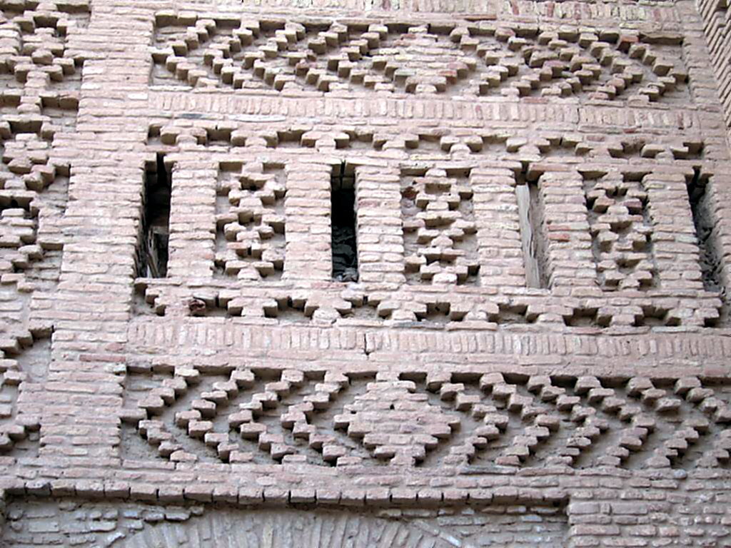 zurüchversetzte Lehmziegel schaffen schmückende geometrische Ornamente mit