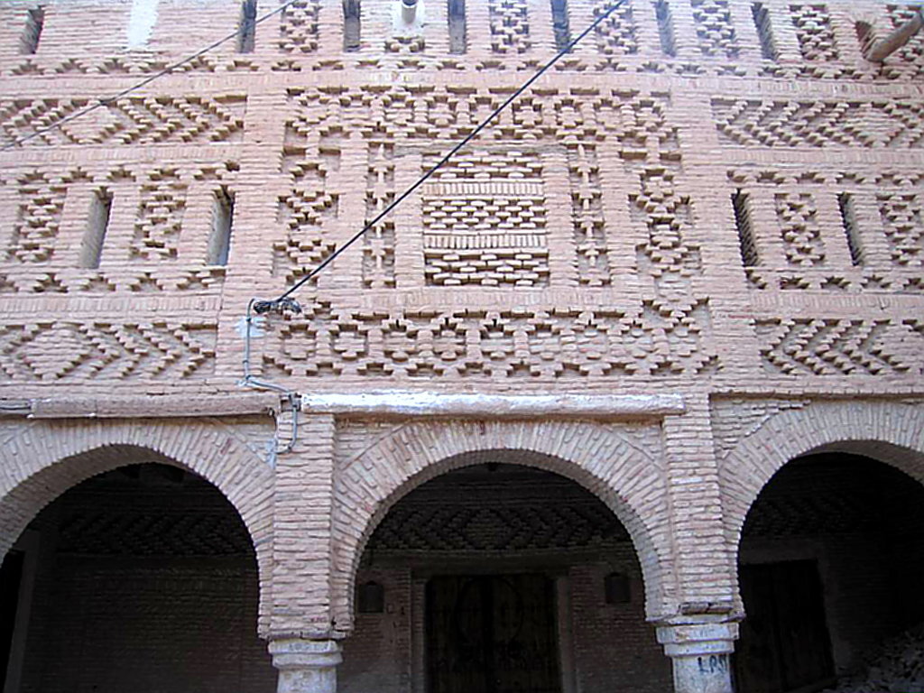 zurüchversetzte Lehmziegel schaffen schmückende geometrische Ornamente mit