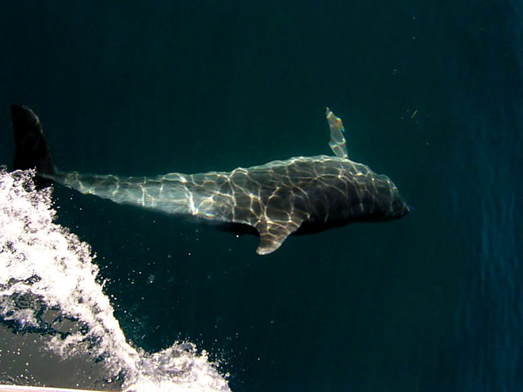 vorbereitet. Kaum sind wir aus dem Hafen raus, verfolgt uns schon die Garde Nationale mit einem schnellen Motorschiff. Sie wollen wissen, wohin wir gehen und wie viele Leute wir an Bord sind. Es hat keinen Wind aber das Wetter ist herrlich, Sonne und etwa 20°, was will man mehr? Um 14h00 erspäht unser Adlerauge Paul Delfine. Paul ist ein absoluter Spezialist, im Umkreis von 5 Seemeilen sieht er alles was sich auf dem Meer befindet, aber seine Socken oder sein Hemd kann er nicht finden, auch wenn es nur 1 m neben ihm liegt!