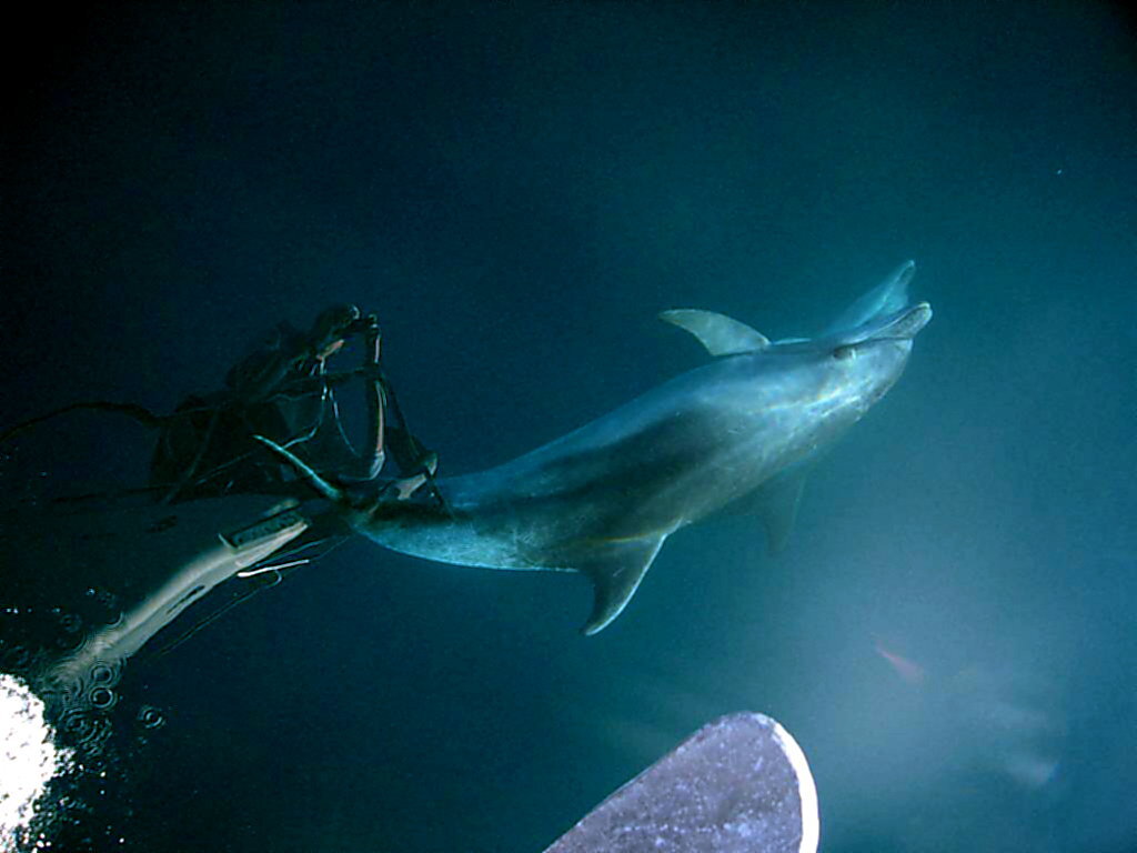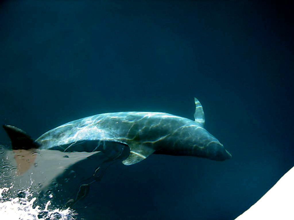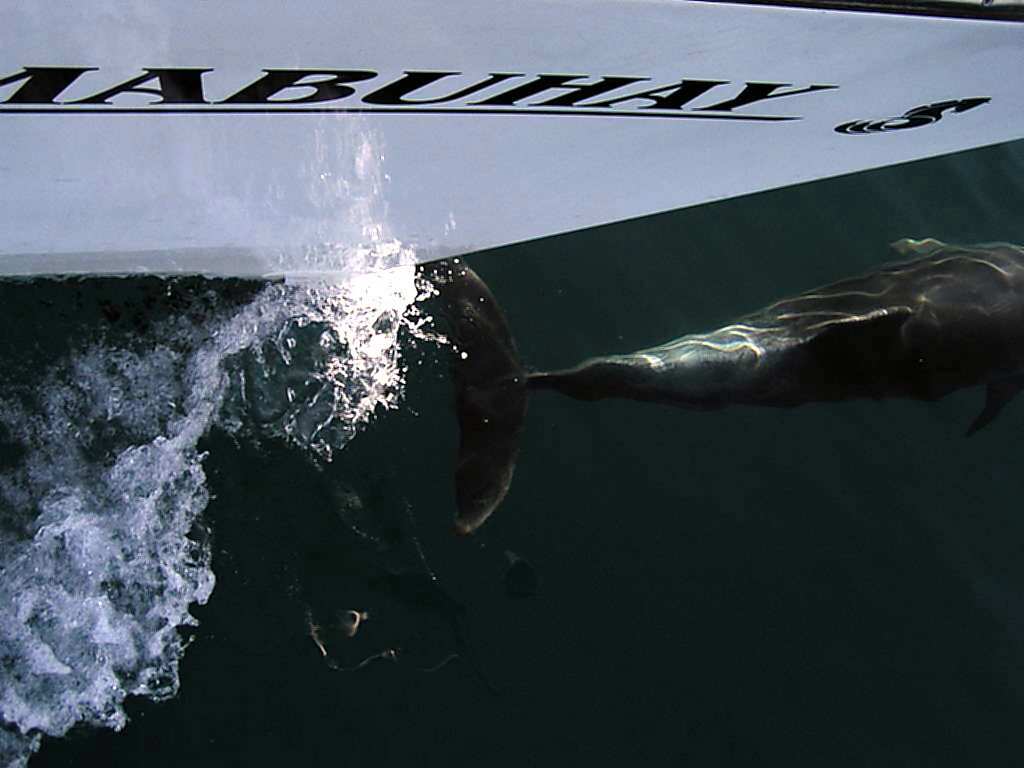 Donnerstag, 28.Dezember 2006: Um 11h30 geht es wieder raus in die Bucht zum Segeln. Das Wetter superschön, Sonne, 20°: Wir werden wieder von der Garde Nationale angehalten und sie wollen das gleiche wissen wie gestern. Um 13h30 wieder: Delfine! Diesmal sind es nur 3 Stück. Eine Delfinmutter und ihr Junges, vielleicht ist der Dritte auch ein Junges von ihr. Das Kleine schwimmt immer unter der Mutter und es ist faszinierend anzusehen wie die beiden synchron auftauchen, atmen, schwimmen und wieder abtauchen.