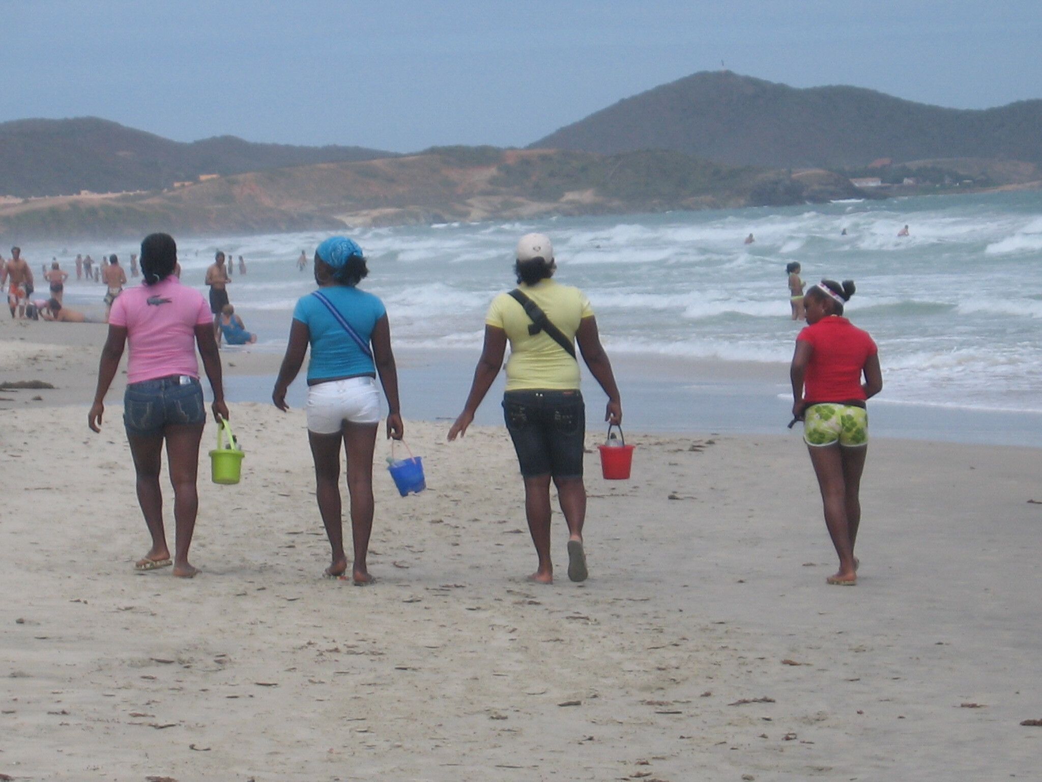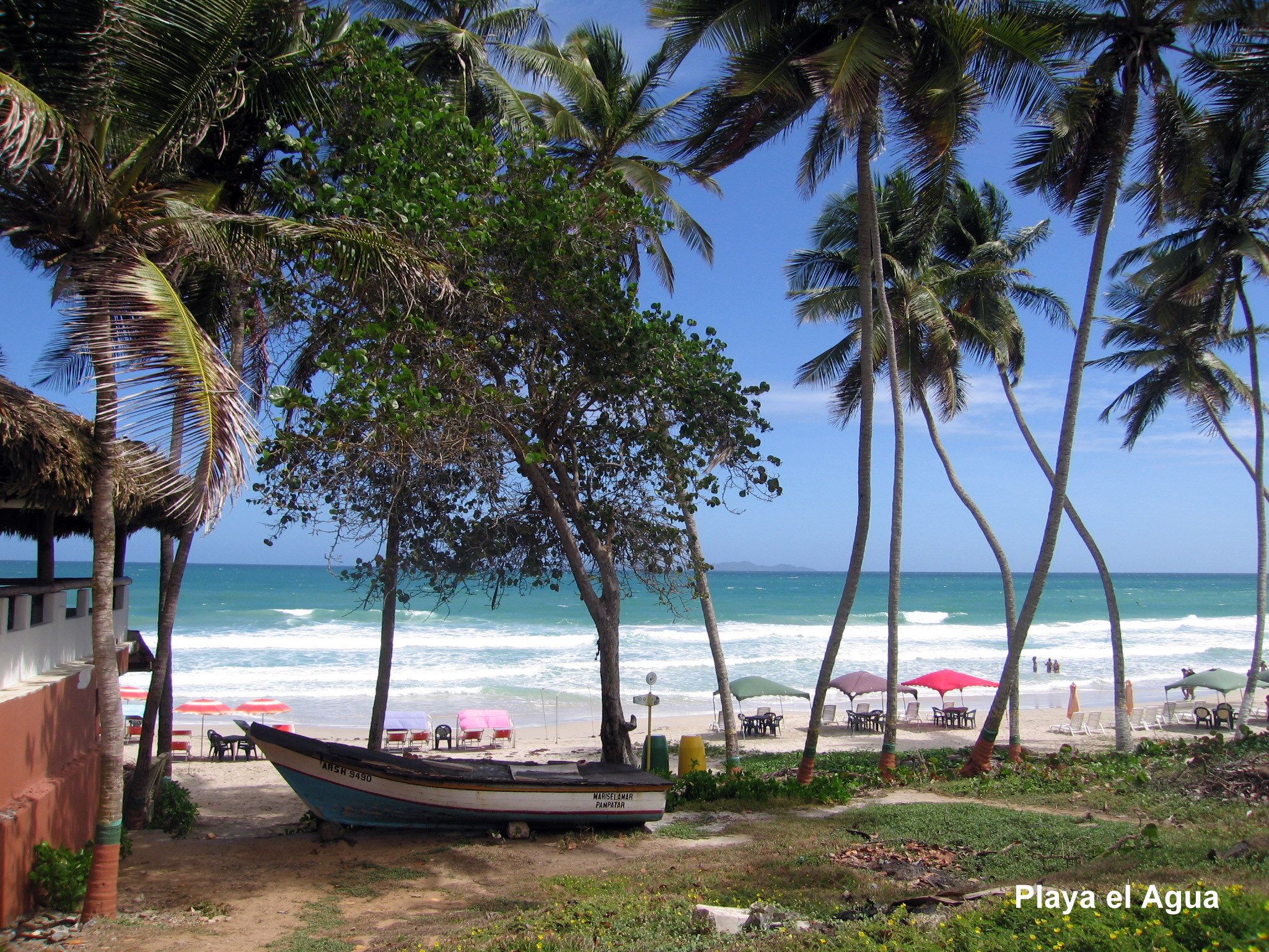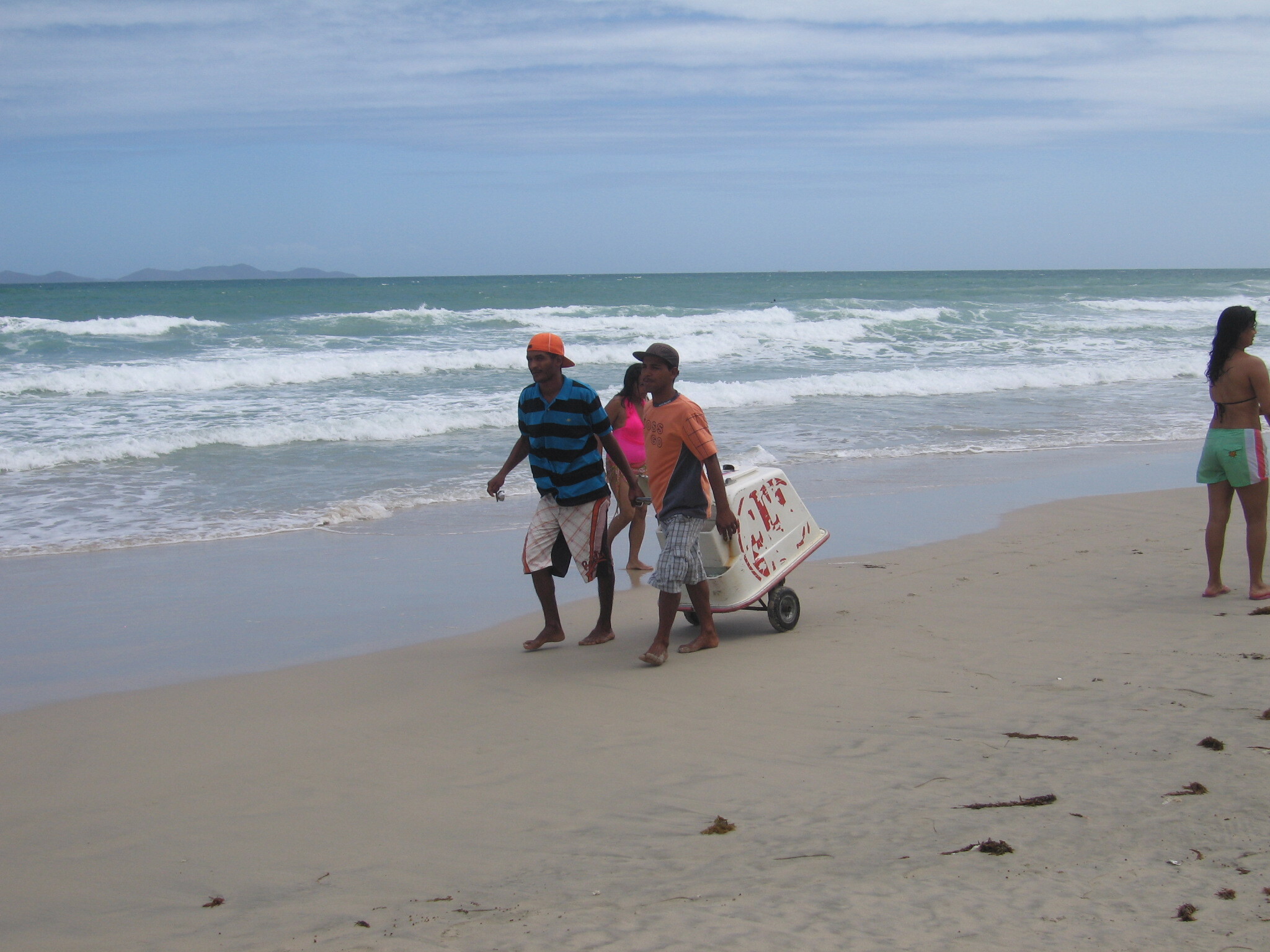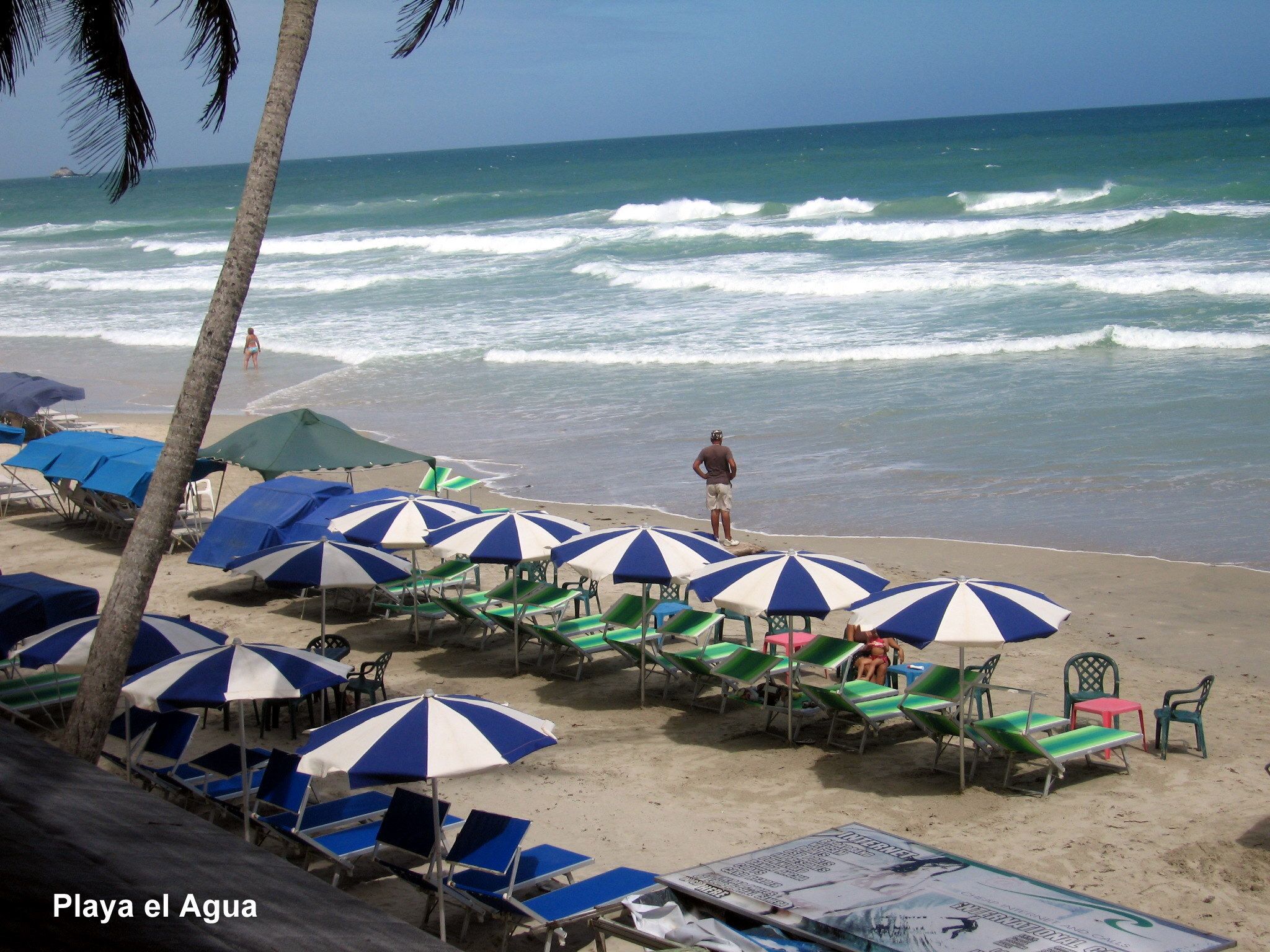 Sonntag, 31.Januar 2010: Porlamar: Trotz heftiger Schaukelei schlafen wir sehr gut. Es ist ein schöner sonniger Tag. Um uns die Zeit ein wenig zu verkürzen, bis unser nächster Besuch am Freitag ankommt, sind wir um 10h bereits auf der Plaza Bolivar. Wir setzen uns in einen klapprigen Bus, der nach Playa el Agua fährt. Dieser touristische Ort mit vielen Hotels liegt an der Nordküste der Insel Margarita. In 40 Minuten fahren wir quer über die ganze Insel, was pro Person 4 Bolivar kostet (ca. 80 Rappen). Hier laufen wir dem Strand entlang und schauen uns das Strandleben, der vorwiegend venezuelanischen Gäste, an. Weil ja heute Sonntag ist, sind viele mit ihren Autos hergekommen. Es hat richtig viel Wind, die Sonnenschirme flattern nur so, und die Brandung donnert ununterbrochen gewaltig an den Strand. Am Sandstrand essen wir bei einer Strandbude je einen Fisch (Red Snapper), Reis und gemischten Chabis-Rüebli-Salat. Es ist sehr gut und günstig (35 Bolivar; ca. 5 SFr. pro Person)!