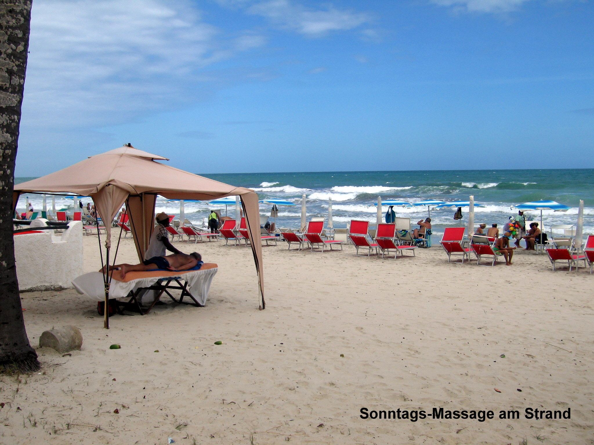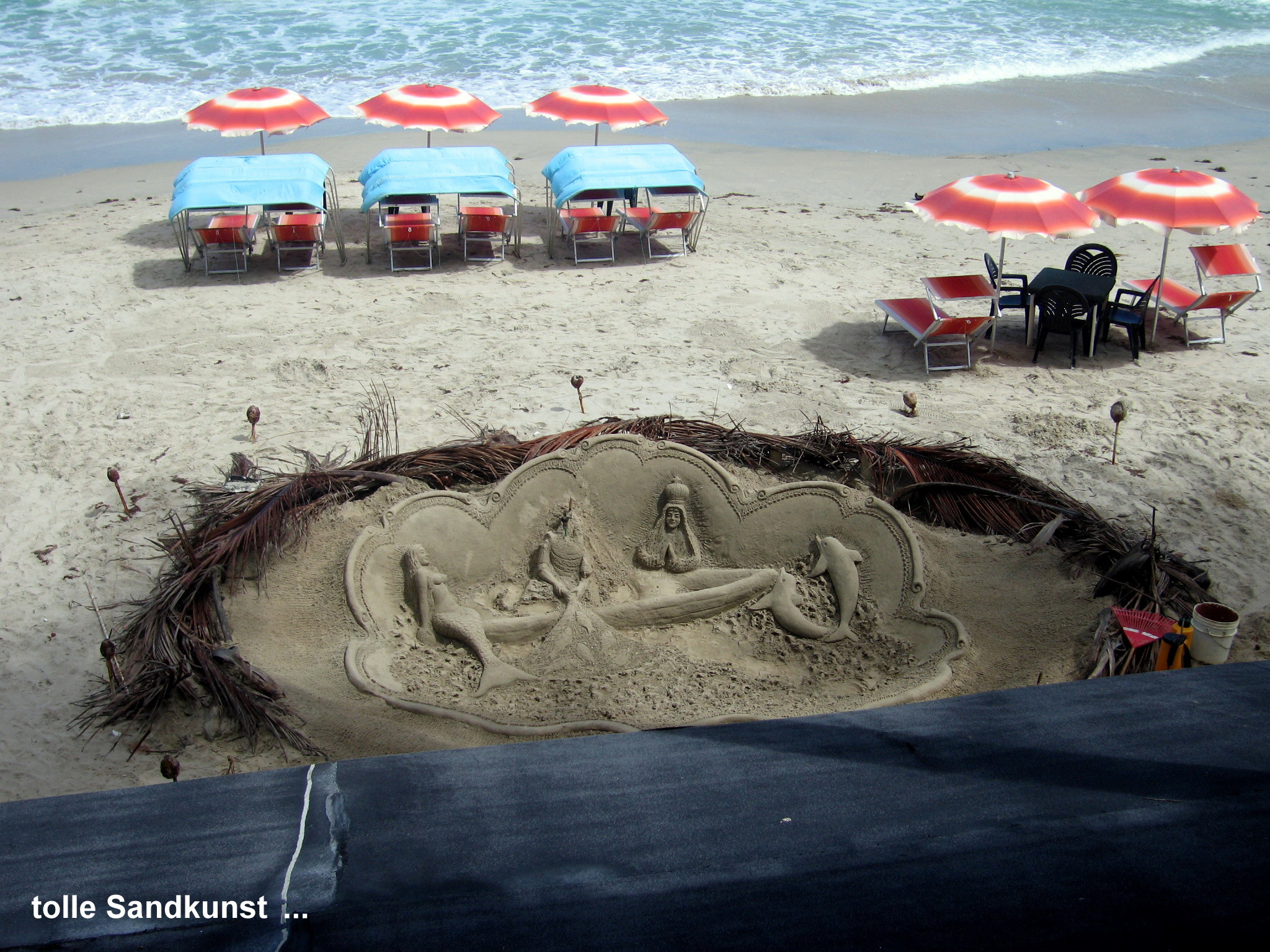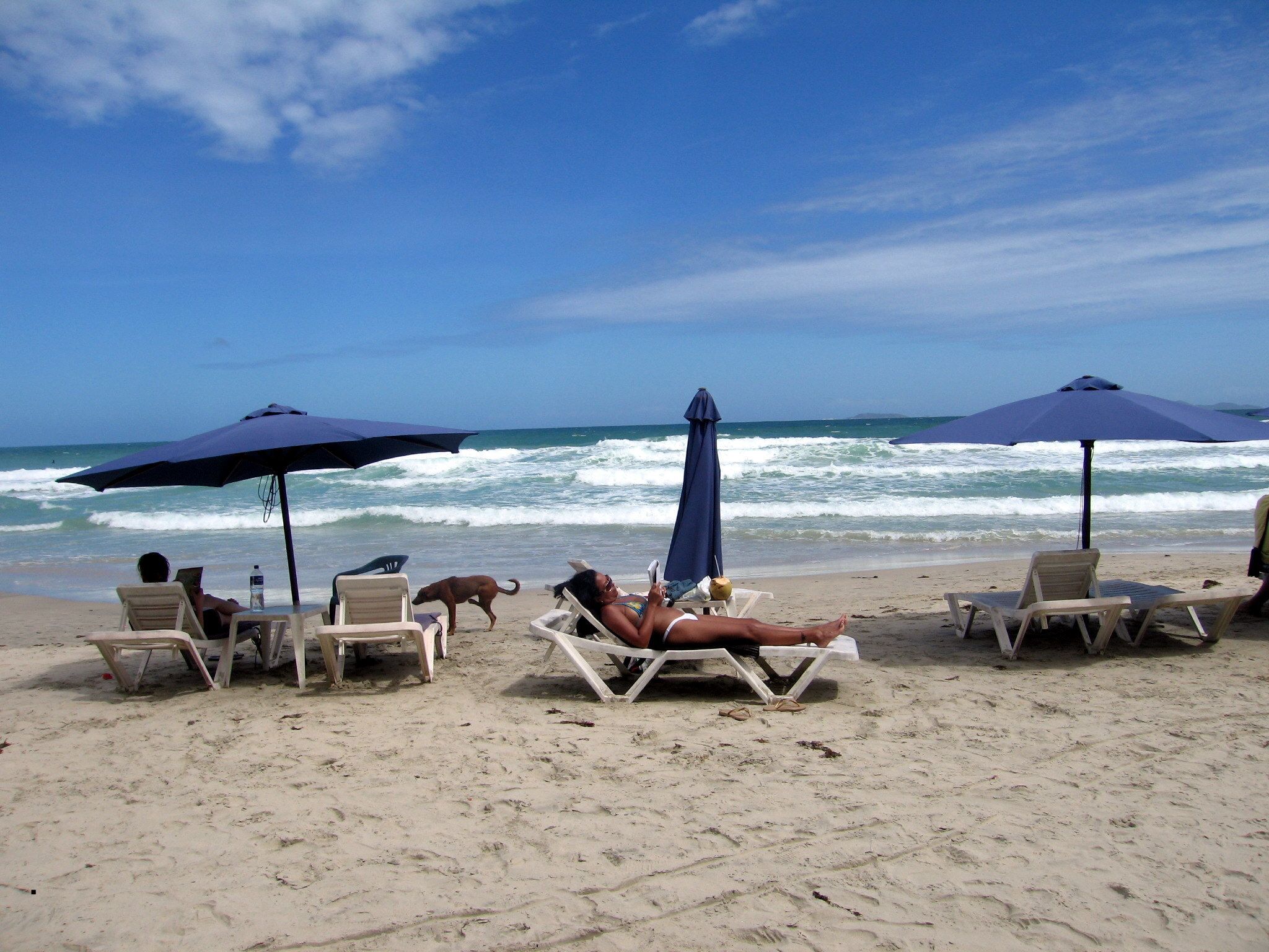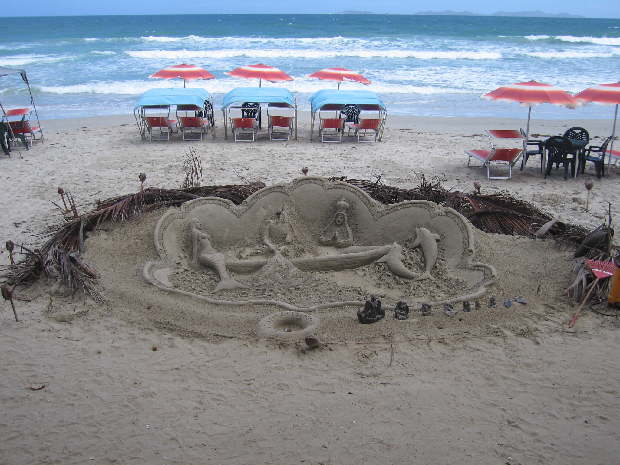 Sonntag, 31.Januar 2010: Porlamar: Trotz heftiger Schaukelei schlafen wir sehr gut. Es ist ein schöner sonniger Tag. Um uns die Zeit ein wenig zu verkürzen, bis unser nächster Besuch am Freitag ankommt, sind wir um 10h bereits auf der Plaza Bolivar. Wir setzen uns in einen klapprigen Bus, der nach Playa el Agua fährt. Dieser touristische Ort mit vielen Hotels liegt an der Nordküste der Insel Margarita. In 40 Minuten fahren wir quer über die ganze Insel, was pro Person 4 Bolivar kostet (ca. 80 Rappen). Hier laufen wir dem Strand entlang und schauen uns das Strandleben, der vorwiegend venezuelanischen Gäste, an. Weil ja heute Sonntag ist, sind viele mit ihren Autos hergekommen. Es hat richtig viel Wind, die Sonnenschirme flattern nur so, und die Brandung donnert ununterbrochen gewaltig an den Strand. Am Sandstrand essen wir bei einer Strandbude je einen Fisch (Red Snapper), Reis und gemischten Chabis-Rüebli-Salat. Es ist sehr gut und günstig (35 Bolivar; ca. 5 SFr. pro Person)!