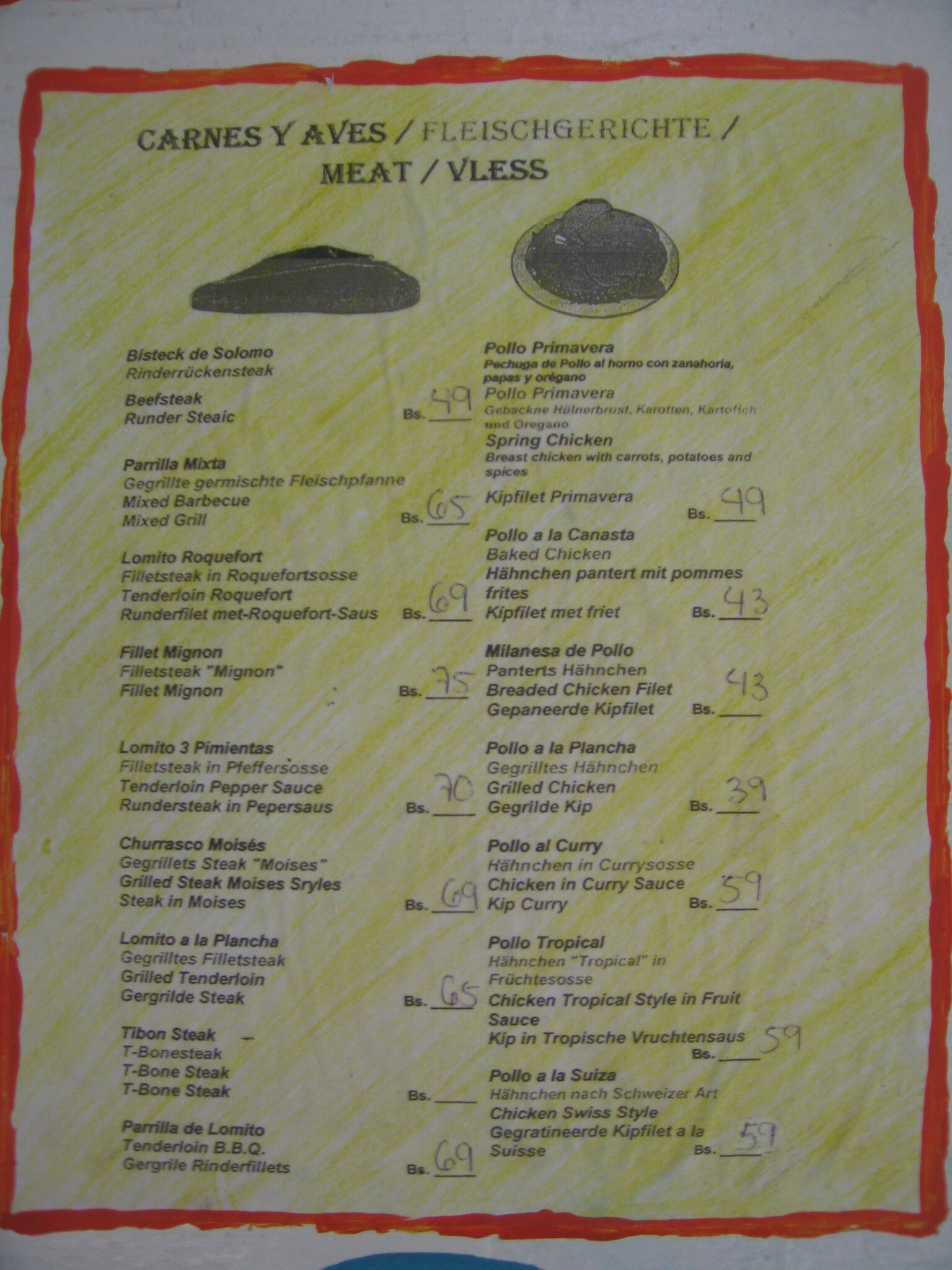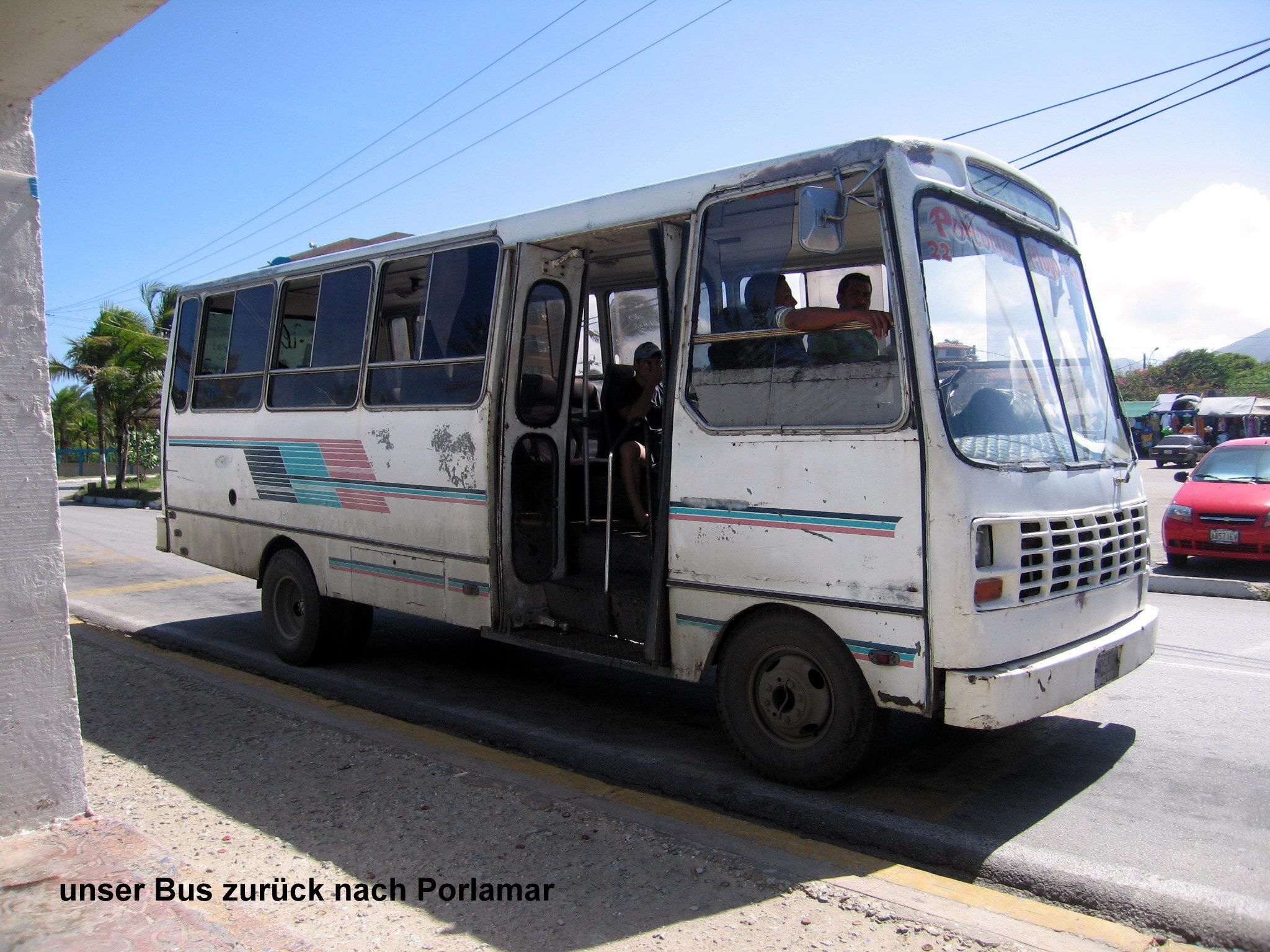 Montag, 1.Februar 2010: Porlamar: Das Wetter ist schön. Aber wir haben eine schlimme, sehr unruhige Nacht hinter uns. Die MABUHAY schaukelt ununterbrochen hin und her. Am Morgen, als ich endlich schlafen könnte, werde ich von Kaffeeduft und der CD-Musik mit Südamerikanischer Musik geweckt, die wir gestern in Playa el Agua neu gekauft haben. Um 9h30, im Sigo-Bus jammern alle über diese bewegte letzte Nacht! Im Sigo hat es heute kein Salz und kein Weizen-Mehl!