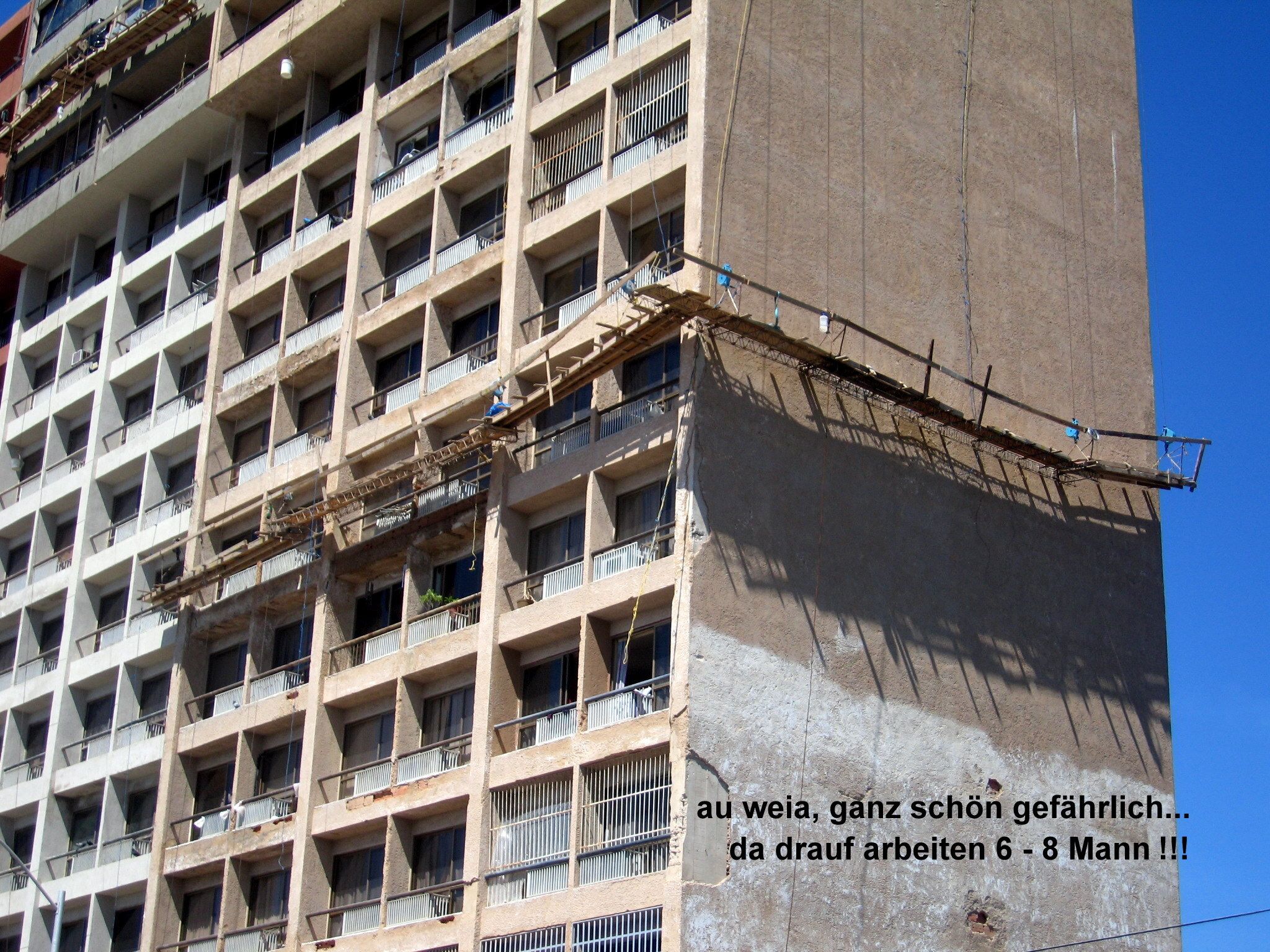 Donnerstag, 21.Januar 2010: Porlamar: Heute haben wir einen ganz besonderen Wunsch. In der Küche möchten wir in einem Vorratsschrank ein zusätzliches Tablar einbauen, damit der Schrank besser genutzt werden kann. Wir fragen Juan, wo wir ein solches Brett bekommen könnten. Er verweist uns an Pedro, einen Taxifahrer, der soeben anwesend ist und sehr gut Deutsch spricht. Mit ihm fahren wir quer durch die ganze Stadt, zu einem Holzgrosshandel. Hier gibt es enorm viele Sorten von Holz. Unser Tablar hat die Masse 32x53 cm und wir müssten eine ganze Platte von 2x3 m kaufen. Hier ist es unmöglich, uns von einem Reststück das Gewünschte zurechtzuschneiden. Alle schütteln nur die Köpfe, da hilft auch Pedro als Übersetzer nichts. Auf dem Rückweg kommt Pedro aber dann doch noch eine Möglichkeit in den Sinn, wo wir unser Brett herkriegen könnten. Er fährt zu einer Schreinerei und siehe da, sofort bekommen wir unser Tablar aus einem Reststück zurechtgeschnitten. Na also, geht doch! Das Brett kostet 15 Bolivar, keine 3 Franken, aber das Taxi kostet uns 40 Bolivar, ca. 8 Franken.
