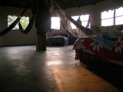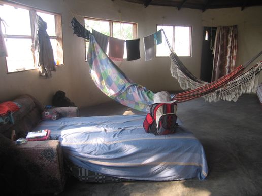 Die harten Typen Heinz und Paul wollen versuchen, in den Hängematten zu schlafen. Edith und ich ziehen die Betten vor.