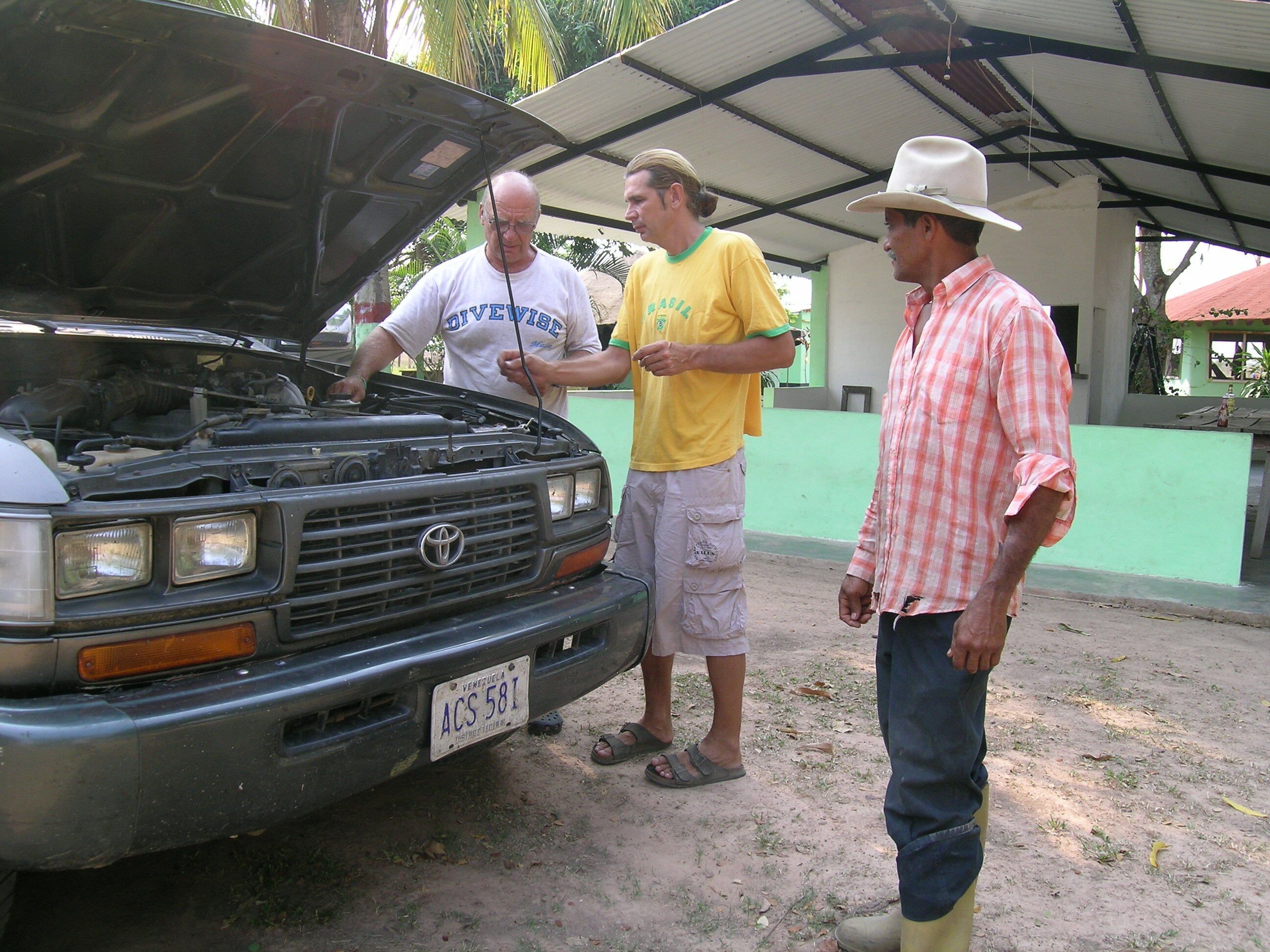 Um 5h holt uns Matthias ab für neue Abenteuer. Heinz hatte gestern und in der Nacht regen Toilettenbesuch und mit ein bisschen Imodium hoffen wir das in den Griff zu kriegen. Zuerst fahren wir an einer immensen Öl-Raffinerie vorbei, die ist so gross wie eine ganze Stadt! Später durchfahren wir Gebiete wo Mais angebaut wird, abwechselnd mit riesigen ausgedörrten Viehweiden mit noch ausdedörrteren Rindviechern drauf. Es sind meistens Zebu-Rinder und sehr, sehr oft sind sie knochenmager. In den Llanos ist die Land- und Viehwirschaft der Haupterwerbszweig. Bei der Viehwirtschaft besteht die meiste Arbeit darin, das Vieh auf die Weide zu treiben. Nun sehen wir auch immer mehr Pferde auf den Weiden stehen. Die Cowboys heissen hier „Llaneros“. Wir durchfahren einen Ort der El Sombrero heisst.
