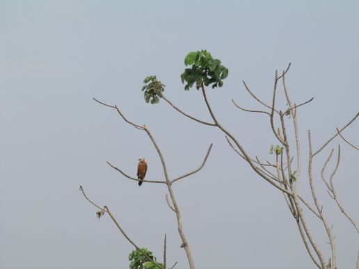 Als wir uns verabschieden, merkt unser Bootsfahrer, dass wir kein Benzin mehr für unseren 40PS-Aussenborder haben. Wir queren den Fluss und fahren zur Tankstelle: aber dort hat es keinen Sprit!!! Und wir sind über eine Stunde entfernt von unserem Camp! Wir müssen weiter flussabwärts bis wir endlich Benzin bekommen. Beim Ablegen fällt unser Führer Matthias fast ins Wasser. Ein Hosenbein ist schon ganz nass. Volle Pulle brettern wir nun zurück zum Camp. Es ist schon nach 14h als wir zu Mittag essen, alle anderen Gäste haben schon gegessen. Es gibt Spaghetti, gemischten Salat und von den Piranhas die wir, d.h. unser Oberfischer Paul, gestern gefangen haben. Mmm..., die sind wirklich prima, so fritiert. Bis um 16 haben wir jetzt Siesta. Dann sind wir wieder unterwegs mit dem Motorboot. Diesmal suchen wir Tucane, das sind die mit dem riesigen Schnabel. Und wir haben grosses Glück, fünf (5) Tucane versammeln sich zuoberst auf einem Baum und sie veranstalten für uns lauthals ein Konzert mit ihrem typischen Ruf. Dazu bearbeitet ein Specht einen Baum mit seinen Klopfzeichen. Auch Aras sehen wir wieder vorbeiziehen.