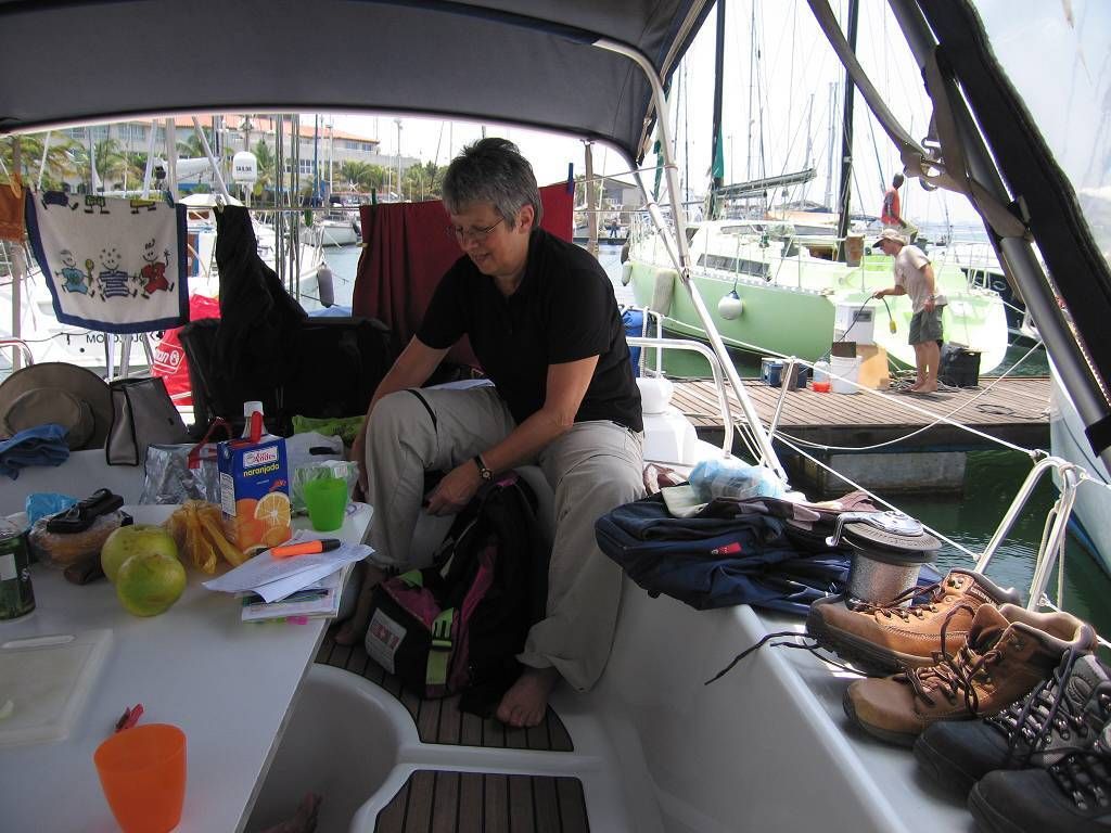 Unser Skipper ist heute gar nicht mehr so sackstark! Er hat in der Nacht ziemlich oft auf dem Topf gesessen und hat heftige Bauchkrämpfe. Trotzdem ist er auf seinem Posten und so fahren wir um 8h los. Ganz kurz sehen wir auch heute wieder ein Grüppchen Delfine. Wir können segeln, wenn auch zum Teil nur sehr langsam. Trotzdem sind wir schon um 14h20 in der Marina Bahia Redonda in Puerto la Cruz. Wir dürfen wieder an den gleichen Platz wie letzte Woche. Den Nachmittag verbringen wir ganz gemütlich mit diversen Beschäftigungen wie zum Beispiel: Gästebucheintrag machen, viele Fotos von den Foto-Chips auf den Computer übertragen, und endlich, nach fast vier Wochen wieder mal die Mails anschauen. Gegen 19h15, genau als wir essen wollen, kommt Matthias. Wir laden ihn spontan zum Essen ein, aber er hat schon bei McDonald's gegessen. Also warten wir mit unserem Abendessen bis er gegangen ist und so wird es fast 20h30 bis wir endlich unsere hungrigen Mägen füllen können.