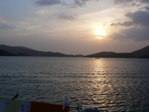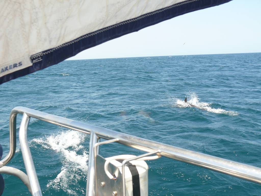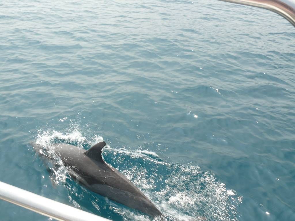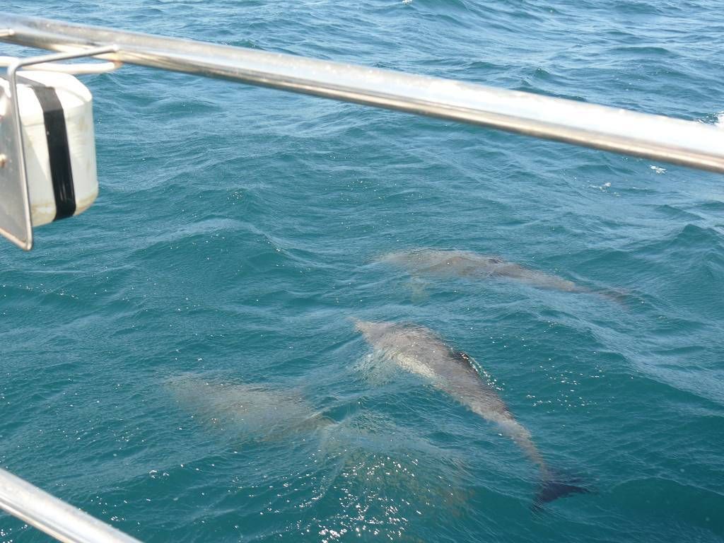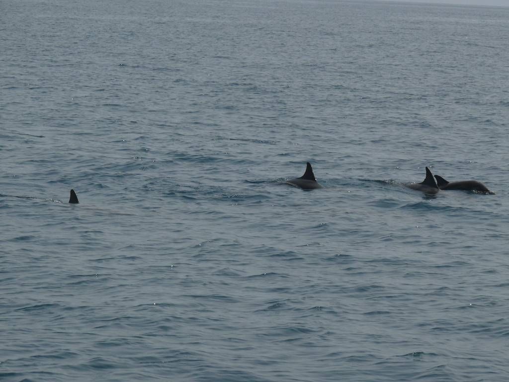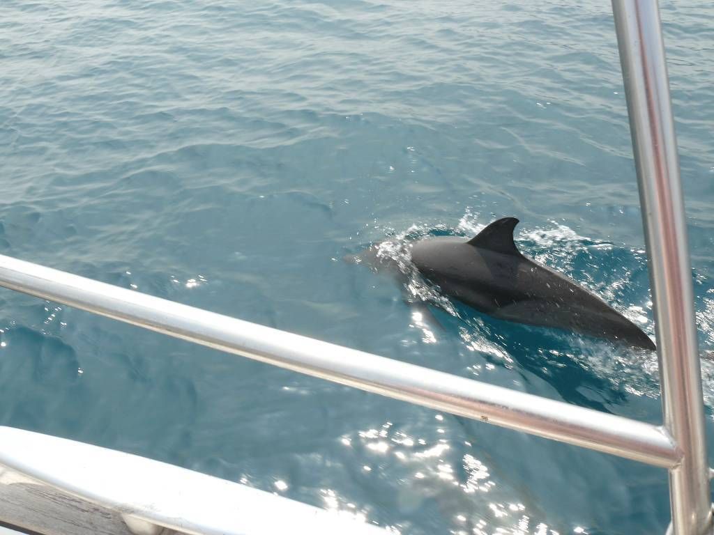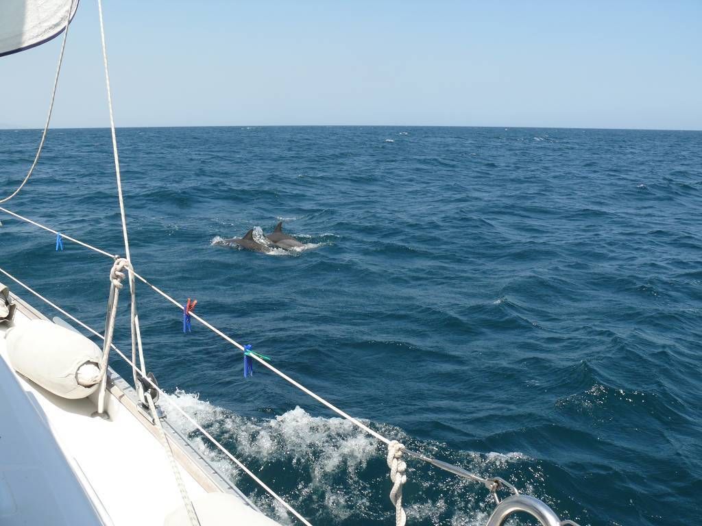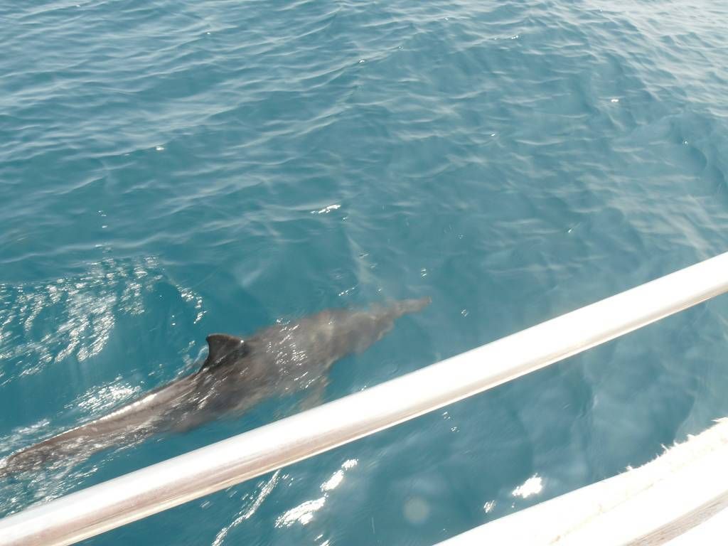 Um 8h40 lösen wir die Leinen vom Steg der Marina und fahren los, Richtung Osten. Es hat keinen Wind und wir motoren. Unser Ziel ist der Mochima-Nationalpark. Wir wollen bis zum Ort Mochima, ein sehr gemütlicher Törn, zur Angewöhnung, für ängstliche Gäste. Um 10h30 sehen wir die ersten Delfine. Eine kleine Gruppe begleitet uns, vorne am Bug schwimmend. Der grössere Teil der Schule widmet sich lieber dem Fressen. 20 Minuten später, schon wieder Delfine! Aber diese sind ziemlich weit weg. Um 12h50: Delfine! Und immer wieder sehen wir ein paar Delfine. Um 14h45 kommen wir am wunderbar ruhigen Ankerplatz vor dem Dorf Mochima an. Wir geniessen ein Bad im angenehm warmen Wasser. Nach dem Abendessen spielt uns Heinz wieder mal ein wenig auf der Mundharmonika vor und wir haben es ziemlich fidel an Bord der MABUHAY.