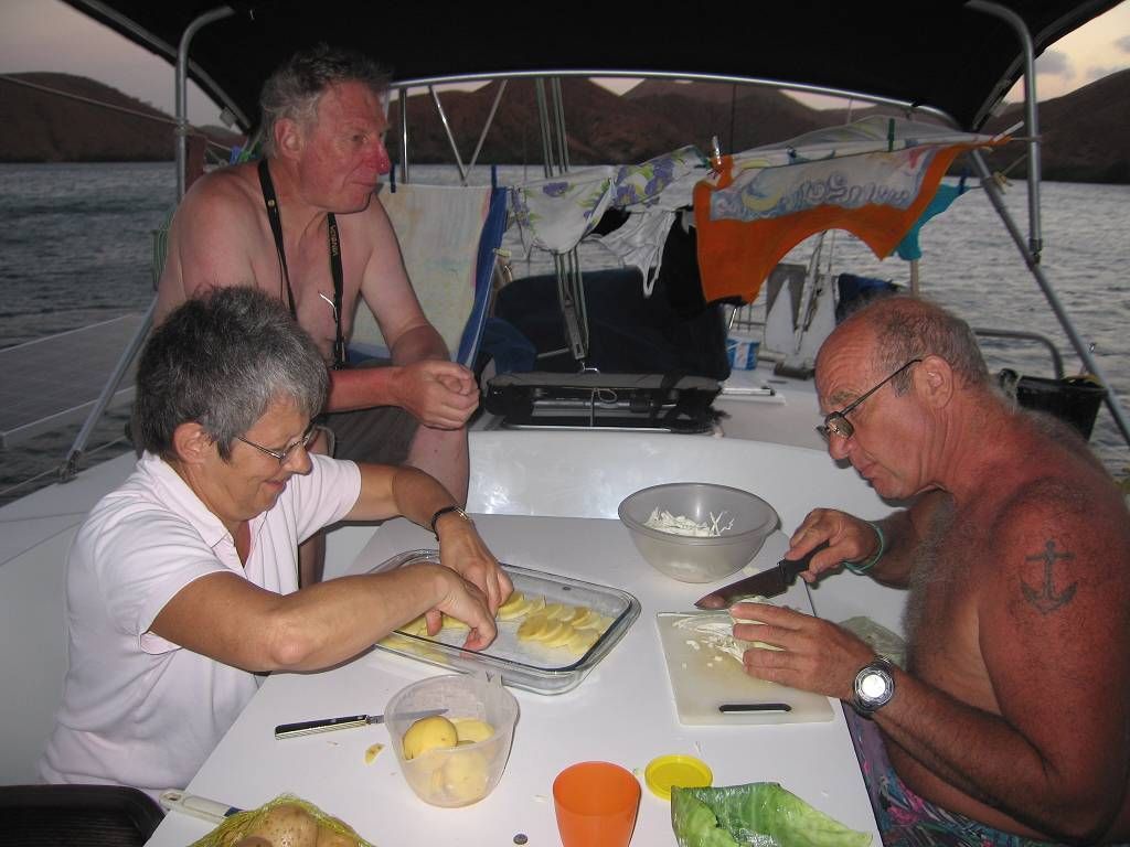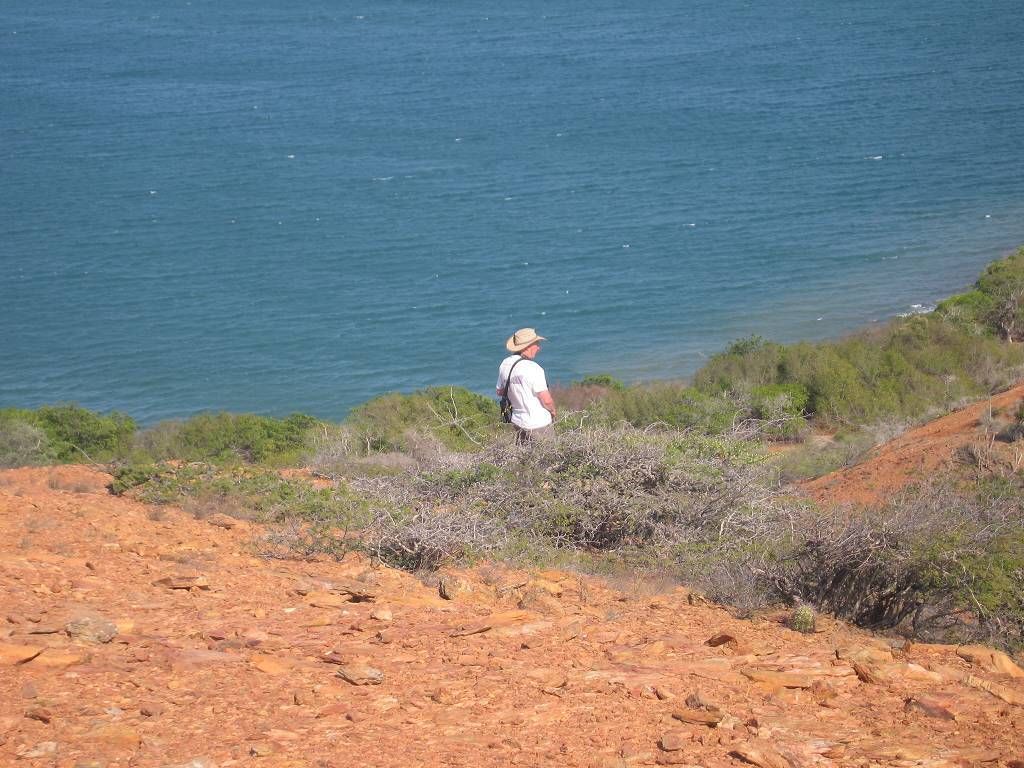 Bereits um 6h fangen die elenden Fliegen wieder an, uns zu plagen. Nach dem Morgenessen gibt es Arbeitsverteilung: Edith wäscht das Geschirr, Heinz knetet Brotteig und Paul und ich schneiden uns gegenseitig die Haare, damit wir nicht aussehen wie der Yeti persönlich. Am Nachmittag machen wir wieder einen kleinen Landausflug. Während 2½ Stunden wandern wir bei schönstem Sonnenschein auf Geissenpfaden durch Kakteen und Gestrüpp. Wir kraxeln auf einen roten Berg hinauf und bewundern den atemberaubenden Ausblick auf die vielen Buchten der Lagune. Einfach nur schön! Abends geniessen wir das gesellige Beisammensein bei tiefschürfenden Gesprächen und heftigen Diskussionen, zum Beispiel über den „Polarstern“!