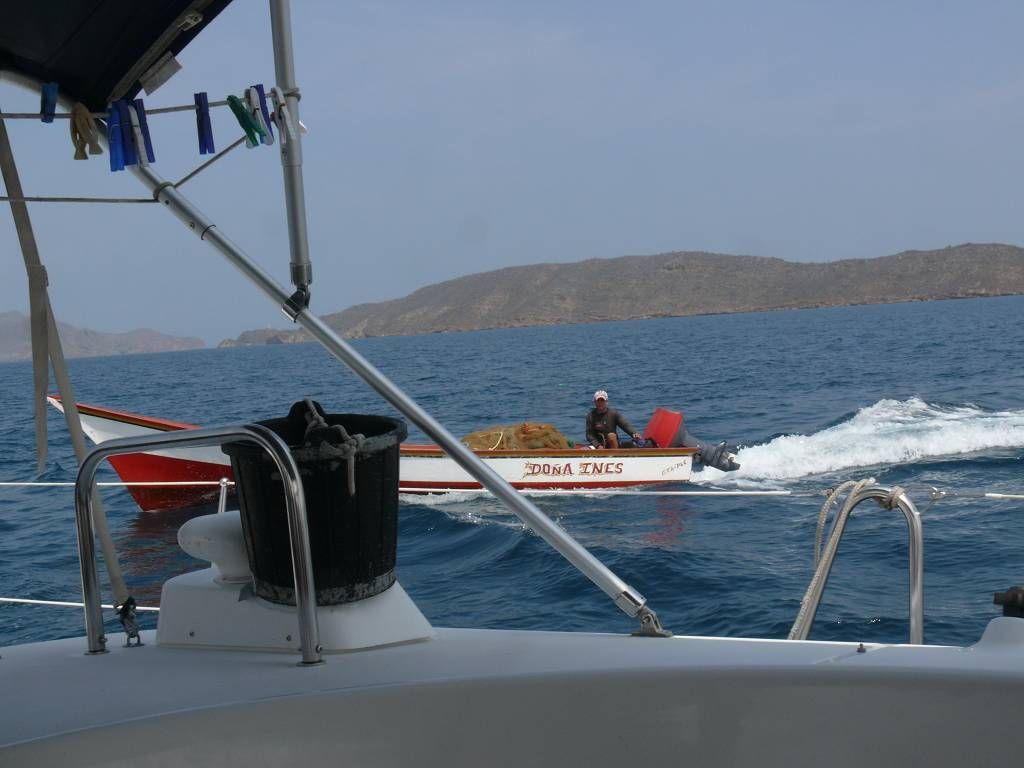 Alle haben herrlich geschlafen. Um 8h35 heben wir den Anker. Paul hat alle Mühe ihn aus dem Schlick zu reissen, so gut hält er. Den ganzen Morgen sehen wir immer wieder Delfine. Einmal sind wir total umzingelt von ihnen. Es sind Hunderte! Es wimmelt rundherum von schwarzen, glänzenden Leibern und wir wissen gar nicht mehr, wohin zuerst schauen. Einmalig schön und eindrücklich! Dieses Schauspiel findet in der Nähe von der Stadt Cumaná statt. Wir wollen in den Golf von Cariaco und je weiter wir in den Golf hinein kommen, desto mehr Wind und Wellen haben wir gegen uns. Wir scheinen, trotz Motor, kaum noch voran zu kommen. Dafür wird es Edith immer übler und sie füttert ein paar mal kurz die Fische. Um 14h35, genau nach 6 Stunden kommen wir in Puerto Real, einem winzigen, malerischen Fischerdorf an. Es hat 25 Knoten Wind. Heute gehen wir nicht an Land, wir bleiben an Bord. Hier hat es unzählige Fliegen die uns ärgern!