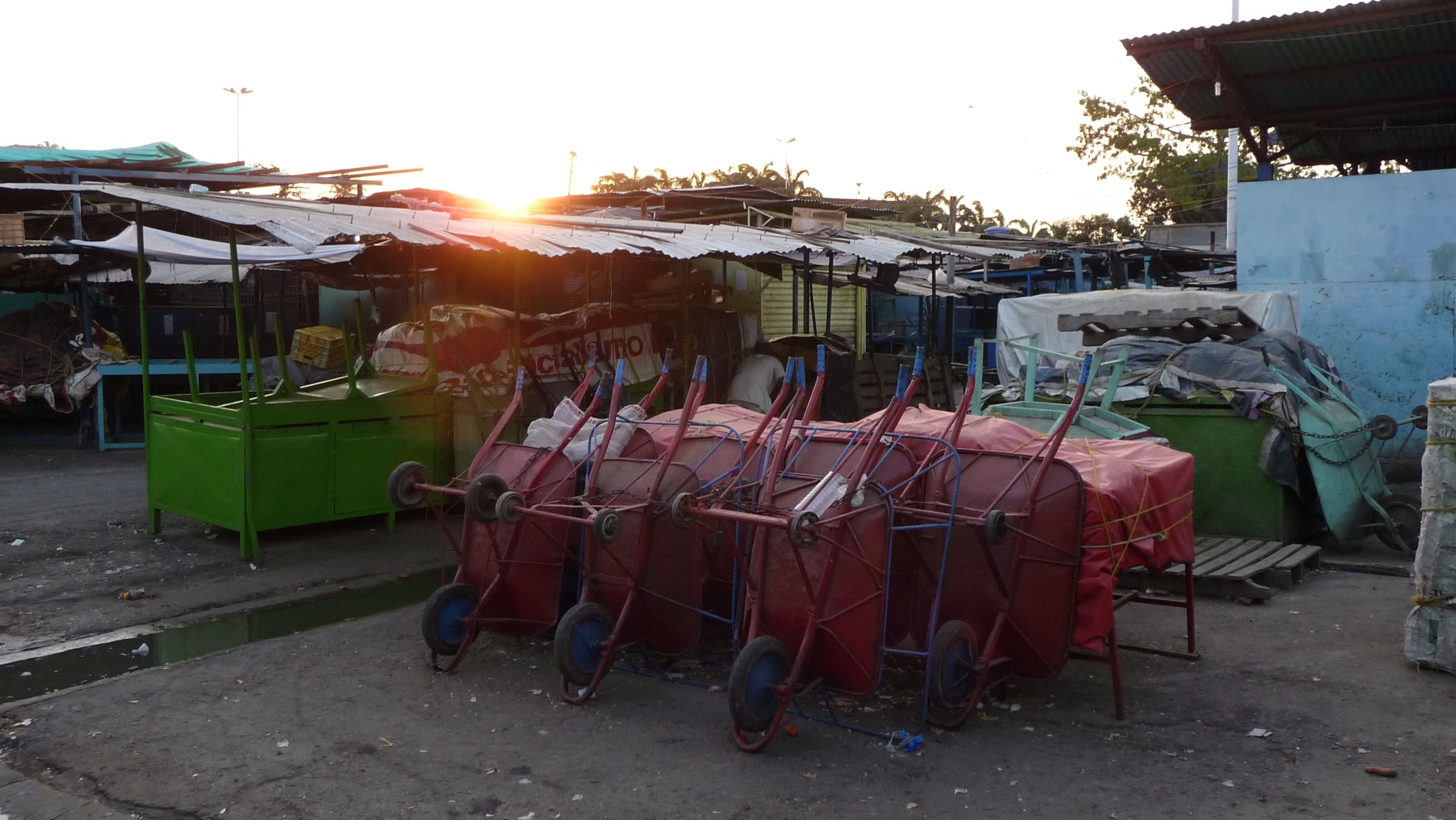 Nachmittags machen wir uns mit einem Taxi, wo man 2 Bolivar (35 Rappen) pro Person bezahlt, auf den Weg zum öffentlichen Markt. Bis wir um 15h dort eintreffen, ist der Markt geschlossen. Schade! Von hier geht es zu Fuss quer durch die Stadt Puerto la Cruz bis zur Plaza Bolivar. Unterwegs bekommen wir in einer Ferretteria wieder mal zwei bronzene Wasserhahnen für Paul und ich kriege im Laden sogar einen Fingerhut voll sehr guten Kaffee. Wir schlendern über die Plaza Bolivar zum Meeresstrand und zur Flaniermeile, dem Paseo Colón. Hier findet jeden Abend ein kleiner Markt statt. Wir schauen uns in aller Gemütlichkeit die Schmuck- und sonstigen Marktstände an. Später essen wir draussen vor einem Restaurant ein gutes Abendessen. Als wir fertig sind und schon bezahlt haben, kommt ein ziemlich „abgerissener“ Mann vorbei und macht uns Zeichen, er wolle etwas zu Essen. Wir fragen ihn, ob er eine Suppe wolle? Er bejaht und Paul bestellt und bezahlt für ihn eine Gemüsesuppe. Es ist die gleiche Suppe, wie Paul vorhin eine gegessen hat. Der Kellner ist gar nicht begeistert und bedeutet dem Mann, er müsse draussen auf dem Trottoir warten. Nach einer halben Ewigkeit kommt endlich die Suppe, aber in einem Plastikbehälter. Obendrauf hat es einen Löffel, eine Serviette und ein Stück Fladenbrot. Das Ganze ist in einem Plastiksack eingepackt. Jetzt will der unverschämte Kerl doch tatsächlich noch Geld von uns haben!!! Aber wir winken ab. Immerhin bedankt er sich doch noch für die Suppe und verschwindet.