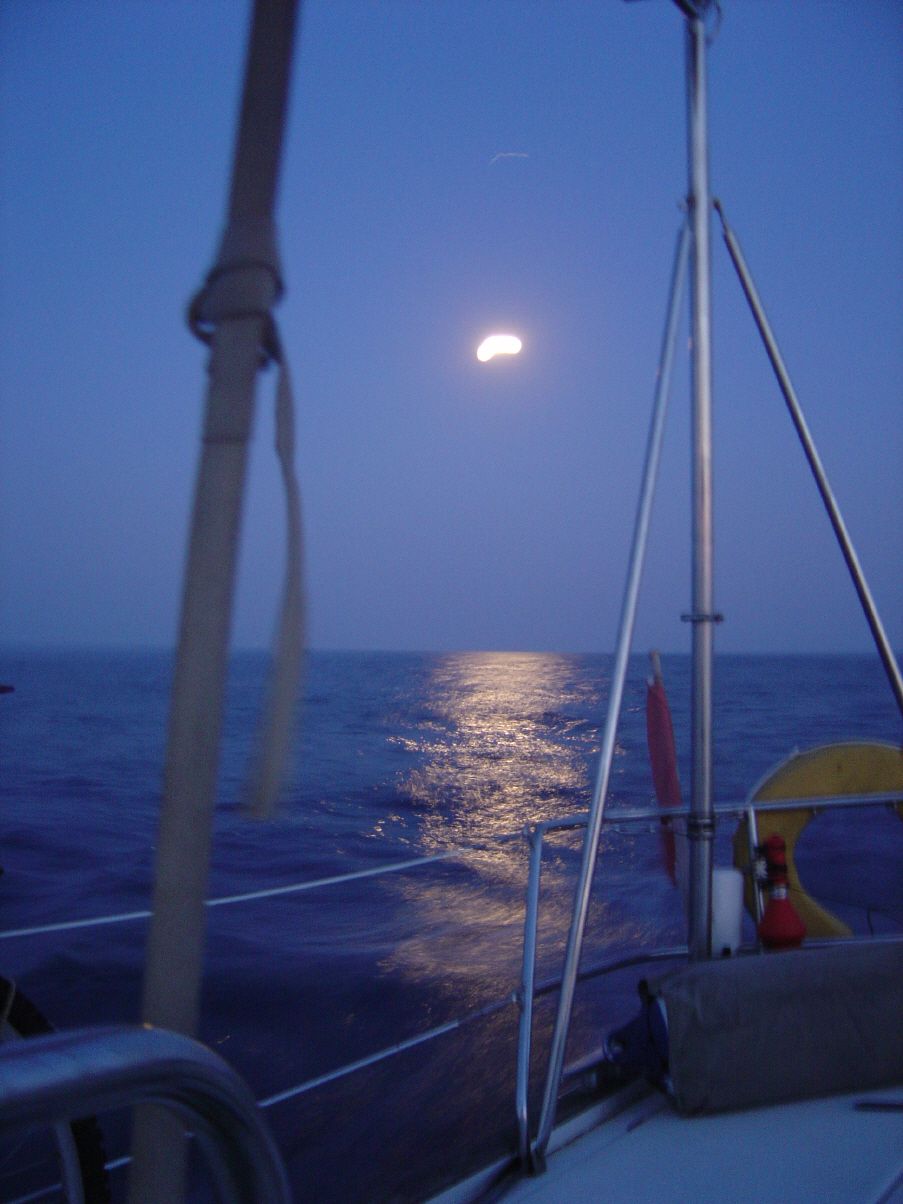 Eigentlich wollten wir ja heute um 5h30 von hier lossegeln. Um 8h20 rufe ich wieder bei Milano an. Für ihn ist alles ganz einfach; gestern Abend und heute Morgen habe es keinen Strom gehabt..., die Arbeit sei fast fertig, er müsse nur noch etwa 1½ m Naht nähen und dann komme er sofort. Wir sitzen an Bord und haben von der Marina keinen Strom und kein Wasser mehr, weil wir ja gestern Abend schon alle Anschlüsse abgehängt haben.