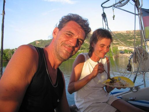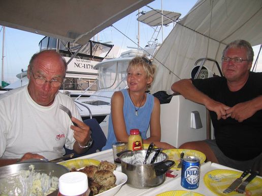 Am Nachmittag kommen Marlene und Benno von der „Diesel Duck“ kurz vorbei und Benno gibt Paul viele gute Tipps wegen den Batterien. Um 17h kommt Manfred von der „Schiwa“ zu uns auf ein oder zwei Bierchen. So gegen 18h30 kommt plötzlich wieder Eduardo zu uns. Er fragt, ob er auf unseren Laptop und ins Internet dürfe, sein Computer sei kaputt. Ma sì, certo! Ich starte subito unseren Compi und Eduardo sucht irgendetwas im Internet. Dann sagt er:“Morgen Nachmittag (Freitag) um 15h fliege ich nach Milano zu MAMMA und am Montag, 28.Juni, fliege ich wieder nach Curaçao zurück!!!!!!“ Manfred , Paul und ich staunen. Dann, so gegen 19h meint er :“Ich koche heute Pasta, wollt ihr alle drei in einer halben Stunde zu mir zum Essen kommen. Wir staunen noch mehr und sagen freudig:“ma sì, certo!“ Um 19h30 sind wir auf dem Katamaran „Buon Vento“ und lernen die Australierin Michelle kennen. Sie ist bei Eduardo als Hilfe angestellt, wenn er bis zu acht Chartergäste hat. Im Moment sind keine Gäste da. Michelle hat drei Jahre lang in Österreich gelebt und war dort im australischen Frauen-Ski-Team. Ihr Bruder hat zweimal an Olympischen Spielen für Australien teilgenommen.