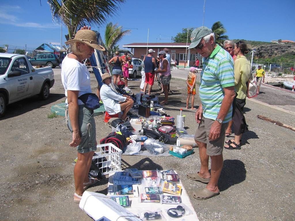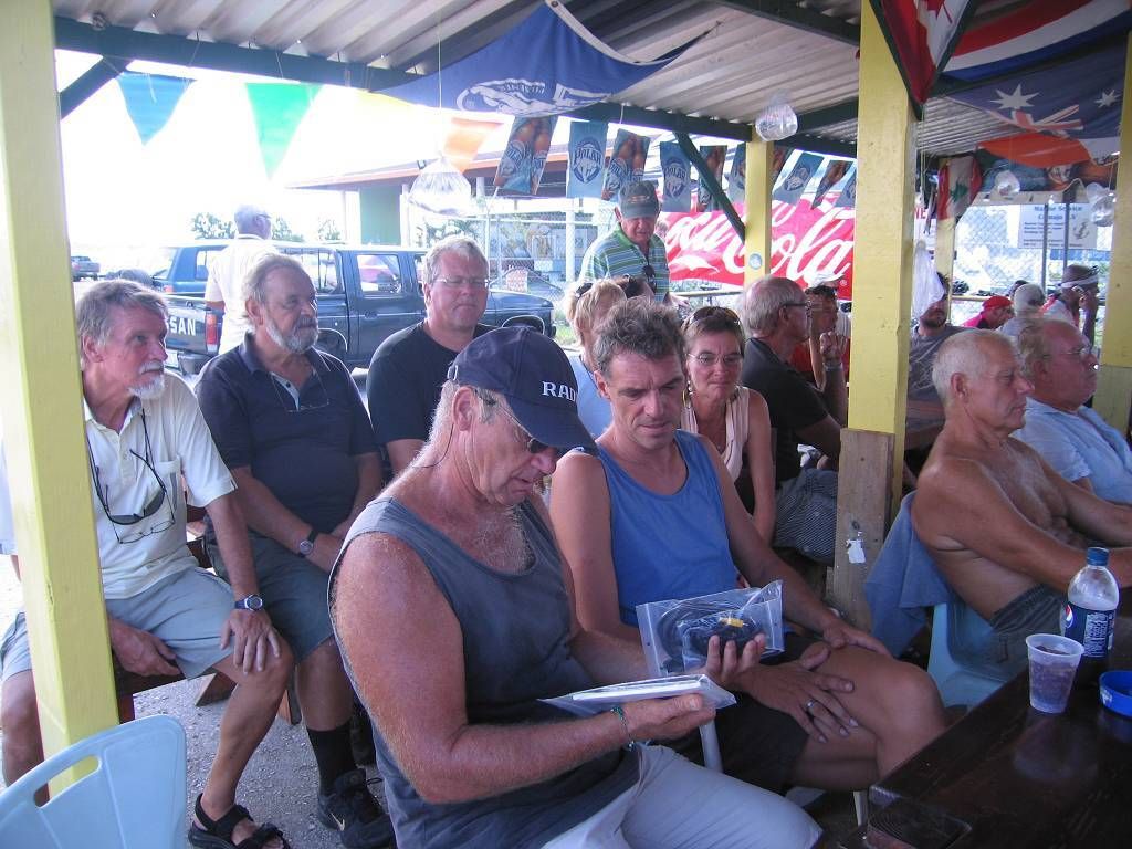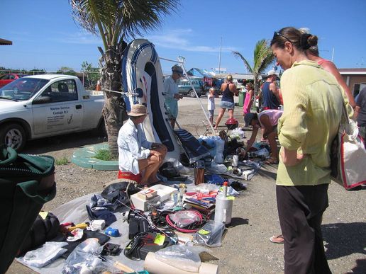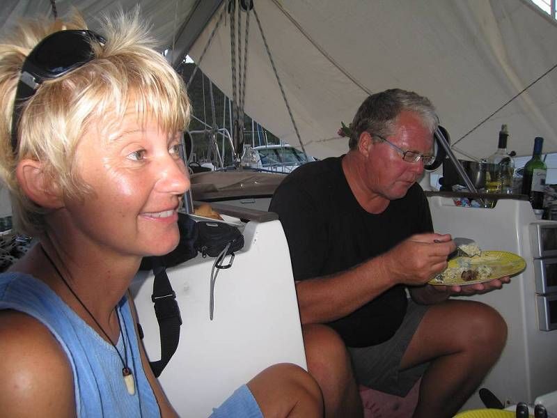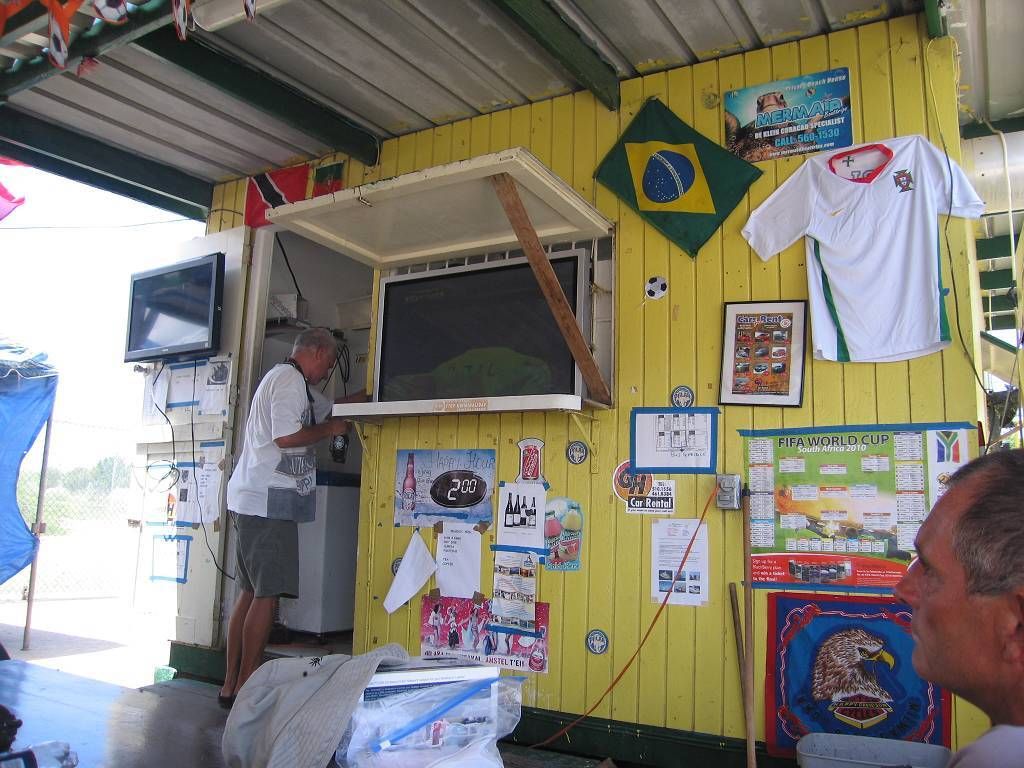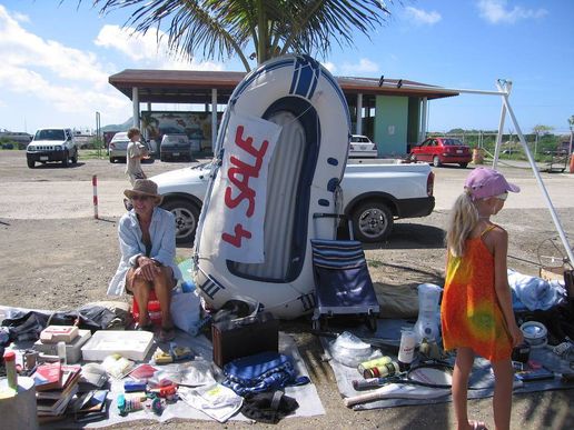 Es ist herrliches Sonnenwetter. Um 10h sind wir beim Dinghydock, wo ein kleiner Flohmarkt von den Yachties stattfindet. Paul hat verkündet, dass wir NICHTS! kaufen werden. Nachdem wir 19 Rechaudkerzen, 1 Servicedeckel für den Wassertank und einen Fotoapparat Sony Cyber Shot gekauft haben, schauen wir uns bei Norman den Fussballmatch Deutschland-England an. Alle Deutschen sind natürlich auch anwesend und als dann Deutschland 4:1 gewinnt , gibt es ein grosses Hallo! Puhh, war das ein anstrengendes Spiel, wir sind alle ganz durchgeschwitzt. Wir fahren zurück auf die MABUHAY und um 14h kommt der Deutsche Udo zu uns. Er sucht einen KLEINEN Aussenborder und wir suchen einen GRÖSSEREN Aussenborder. Nach einer ausgiebigen Probefahrt einigen wir uns darauf, unsere Motoren zu tauschen. Wir haben jetzt einen 2-Takter Yamaha 8 PS und Udo bekommt den 4-Takter Honda 2 PS. Und so sind, ohne einen Rappen Geld auszugeben, alle zufrieden.