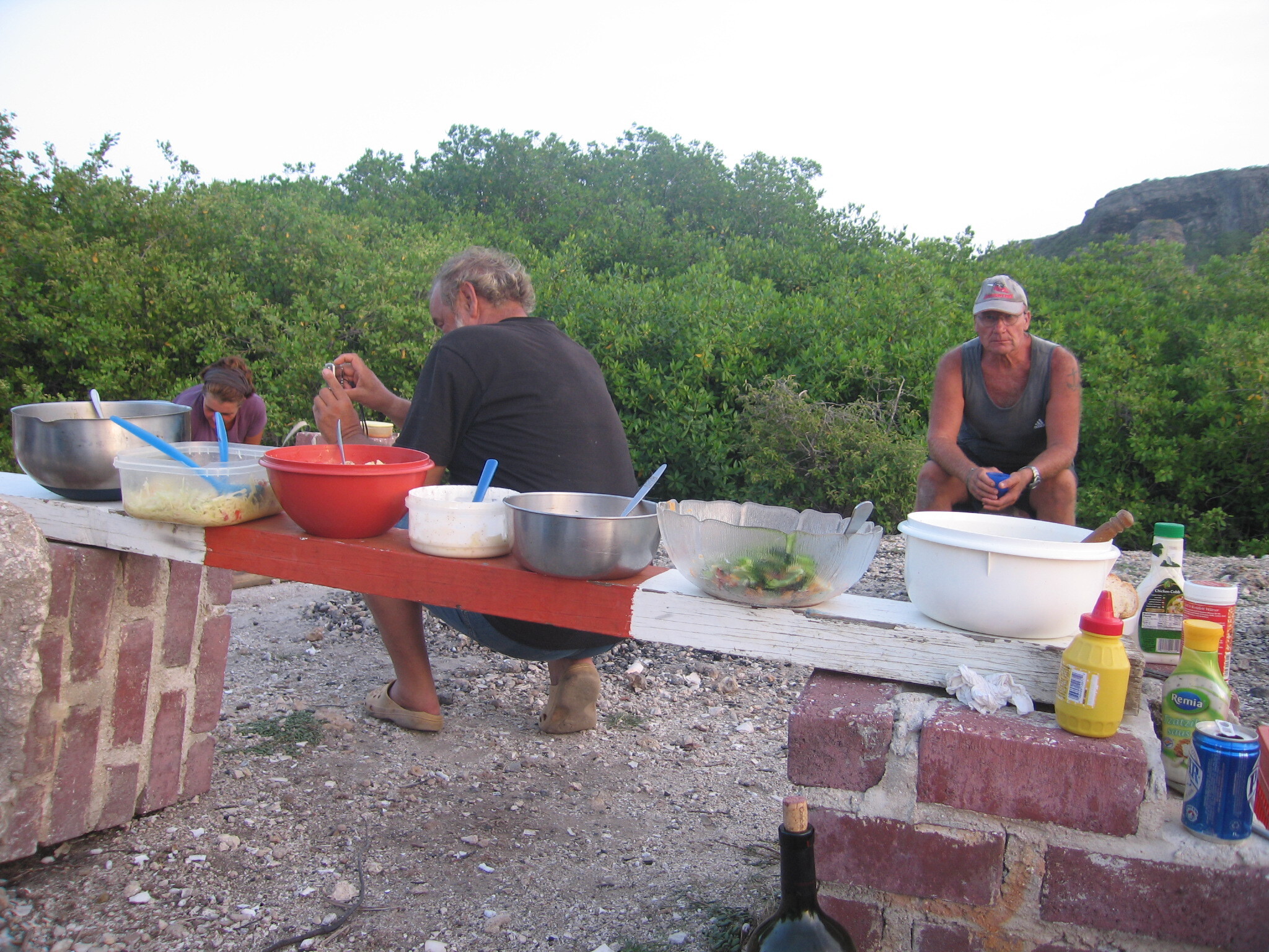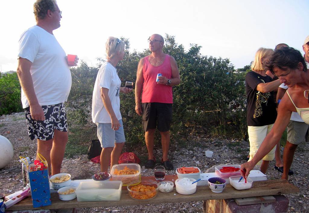 Um 18h sind wir bei den Schweizern Daniela und Beat auf der „Time after Time“ zum Abschiedstrunk eingeladen. Sie wollen morgen nach Bonaire und vielleicht Venezuela fahren. Hmmm..., wir werden mit herrlichen, mit verschiedenen Zutaten bestrichenen Brötchen, richtig verwöhnt! Wir essen so viel, dass wir das Abendessen kochen glatt vergessen können. Merci nochmals und morgen gute Fahrt Euch allen Vieren!