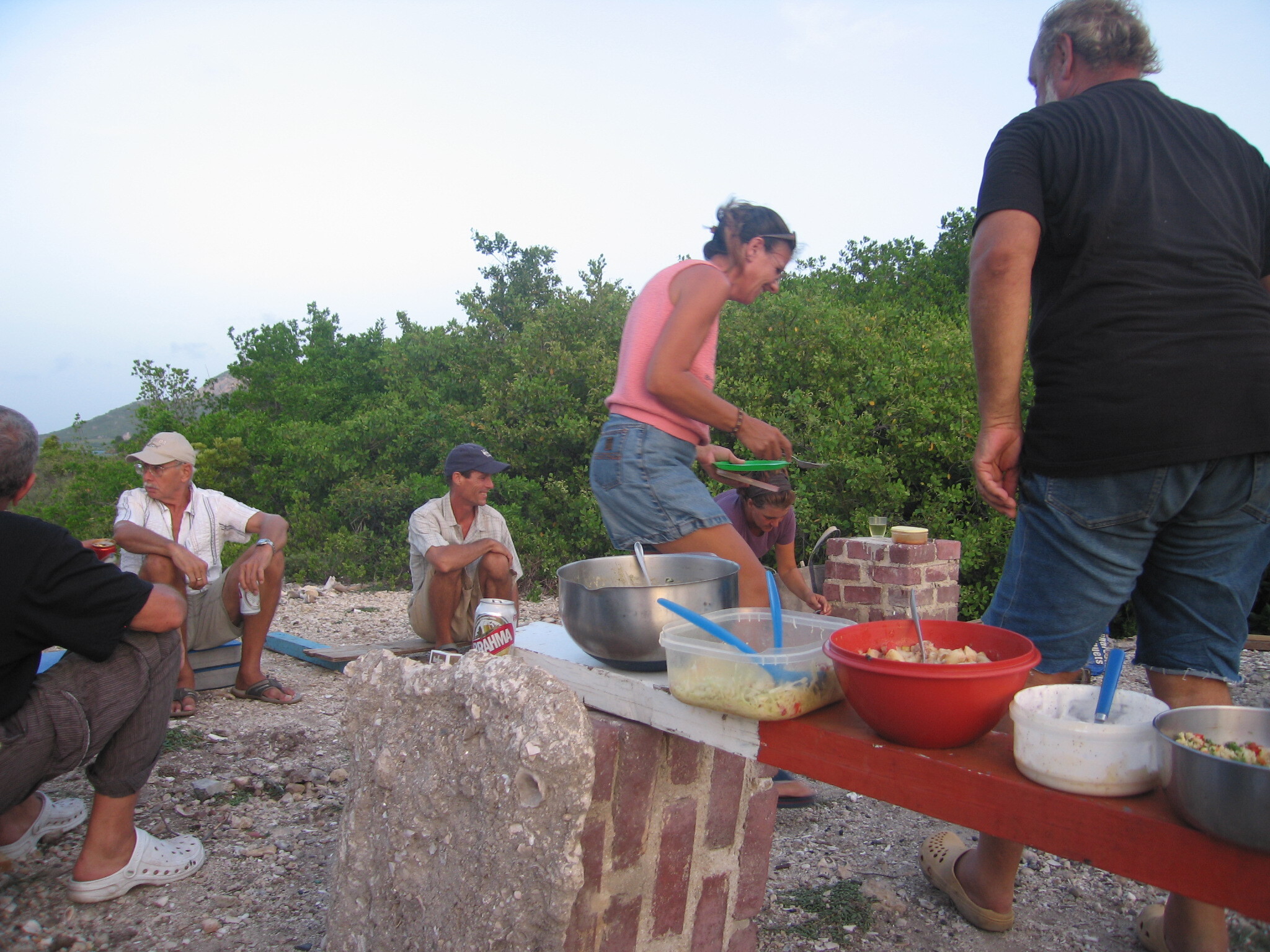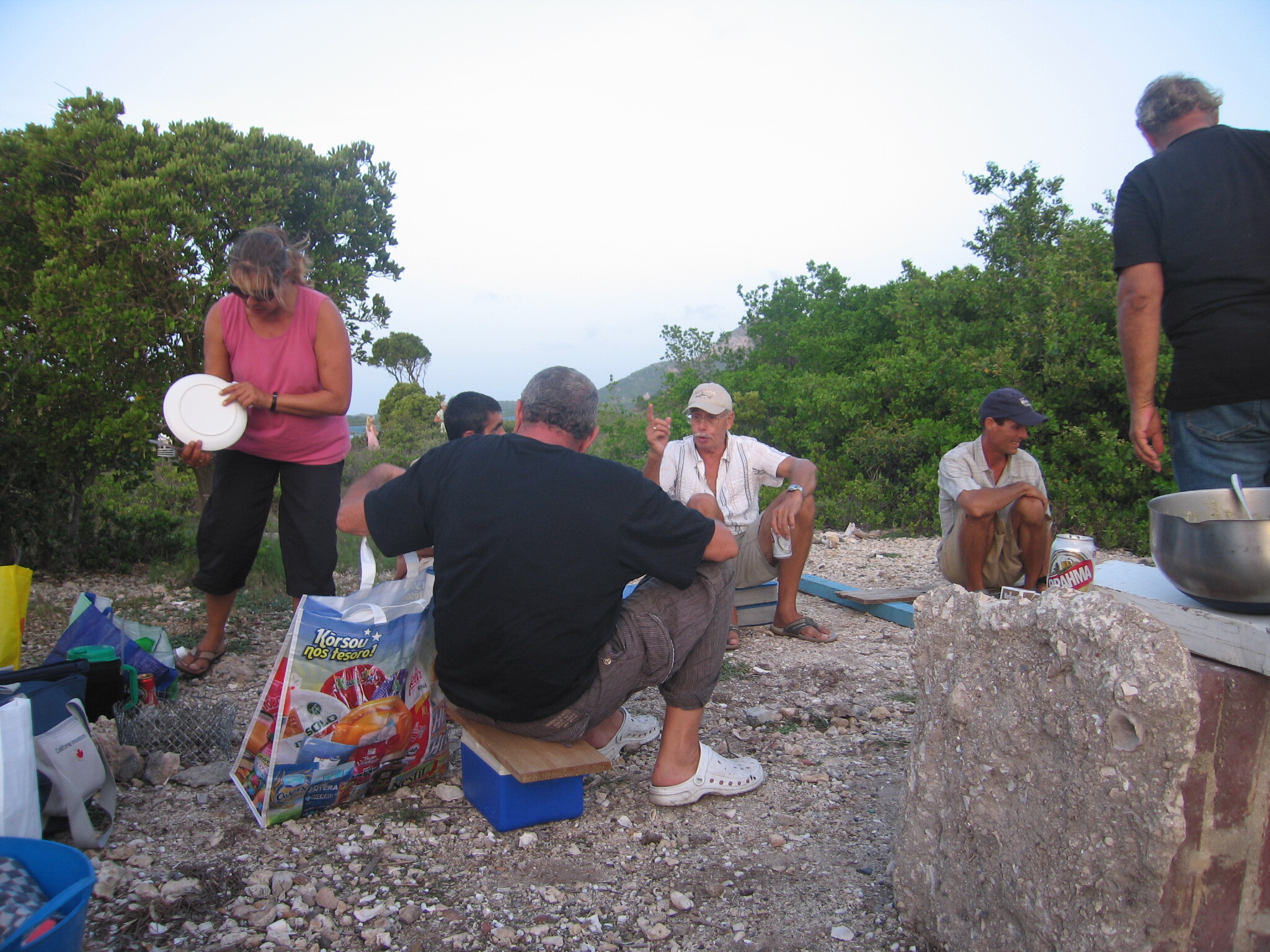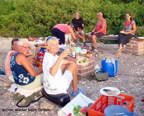 Um 15h fahren Paul und Manfred mit unserem Dinghy in die Kabrietenbay zum „holzen“. Heute Abend wird nämlich von den Deutschsprachigen wieder ein Barbecue veranstaltet. Paul und ich haben Kohlen, Manfred hat Eis gekauft. Wir nehmen auch Michelle mit, weil sie immer noch alleine auf Edoardo's Katamaran BuonVento ist. Edoardo kommt erst morgen zurück. Wir sind 23 Personen. 4 Kinder und 19 Erwachsene und es ist wieder sehr gemütlich. Ausser den Deutschen und Schweizern sind eine Australierin, vier Amerikaner, ein Franzose und zwei Oesterreicher dabei. Es ist sehr schön und wir halten bis um 22h45 durch.