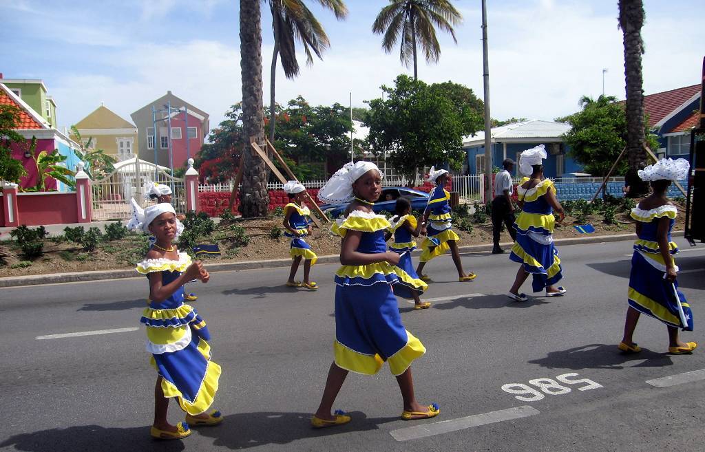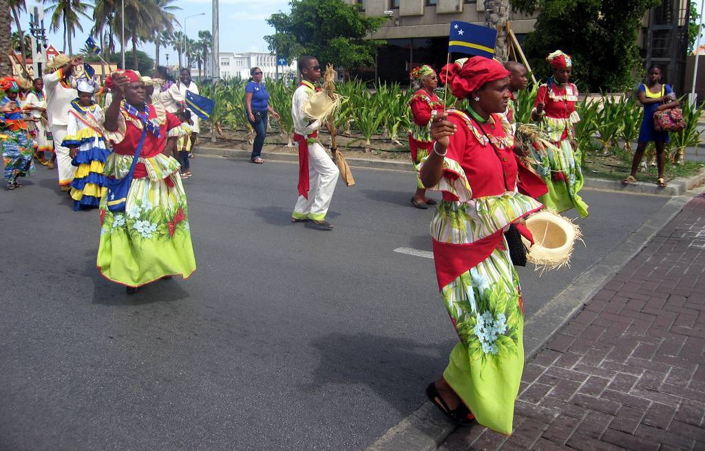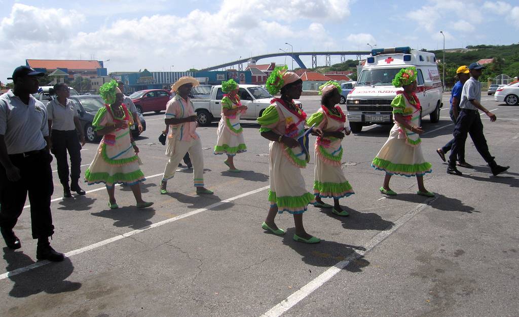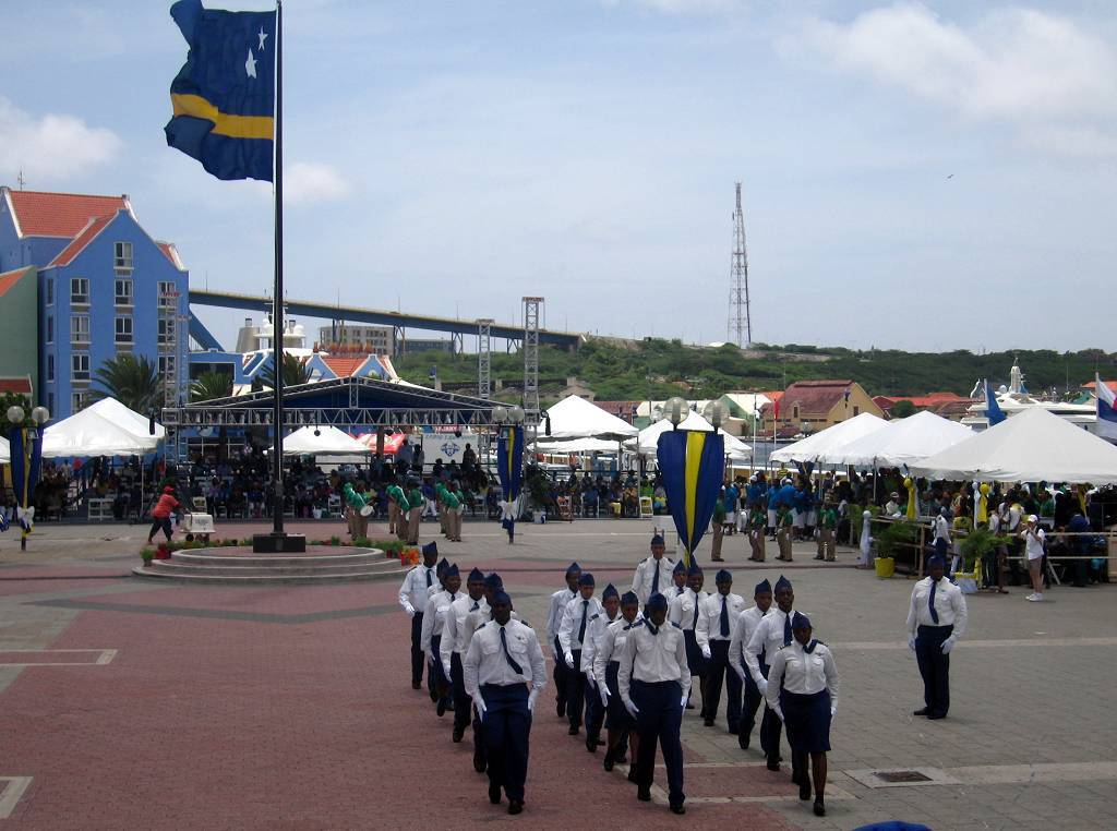 Heute feiert Curaçao den „Dia de la Bandera“, den Flaggentag. Seit 26 Jahren hat Curaçao eine eigene Flagge und das wird nun jedes Jahr am 2.Juli gefeiert. Wir erwischen um 10h15 einen Bus und fahren ins Zentrum nach Willemstad. Die Bus-Endstation ist wie ausgestorben. Wir laufen über die Königin-Emma-Brücke nach Otrobanda. Hier auf dem grossen Platz finden die Feierlichkeiten für das Fest statt. Die offiziellen Ansprachen sind (zum Glück) schon vorbei und wir hören und sehen „nur“ noch Sänger, Tänzer und Marschformationen (fast nur schwarze Mitwirkende). Die Zuschauer, auch mehrheitlich Schwarze, gehen unheimlich mit und es herrscht eine tolle Stimmung. Wir sitzen in einem Gartenrestaurant, direkt beim Festplatz und neben der Bühne, wo das Curaçao Orchester spielt. Daneben ist ein riesiger Fernseher aufgestellt und das WM-Fussballspiel Holland -Brasilien ist in vollem Gange. Den Ton kann man nicht hören, die Musik spielt viel zu laut.