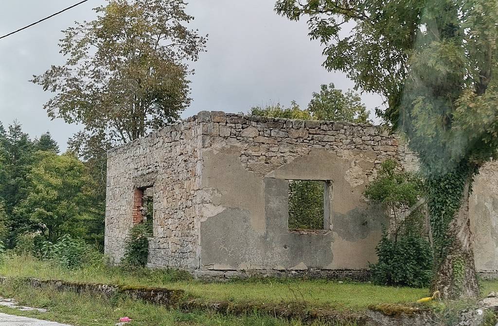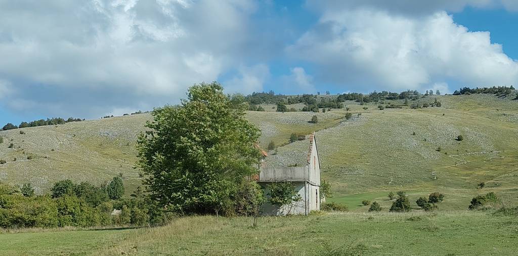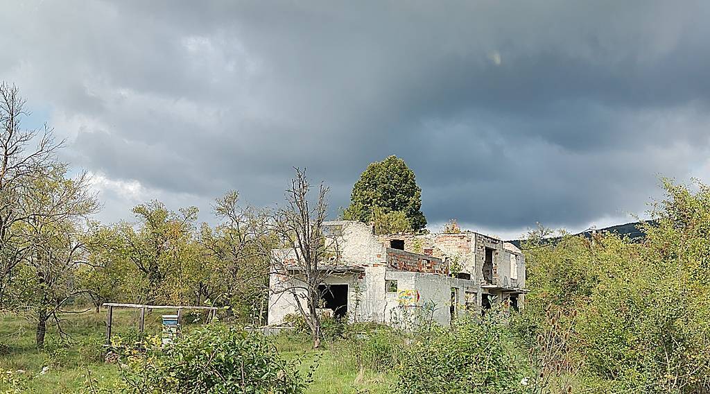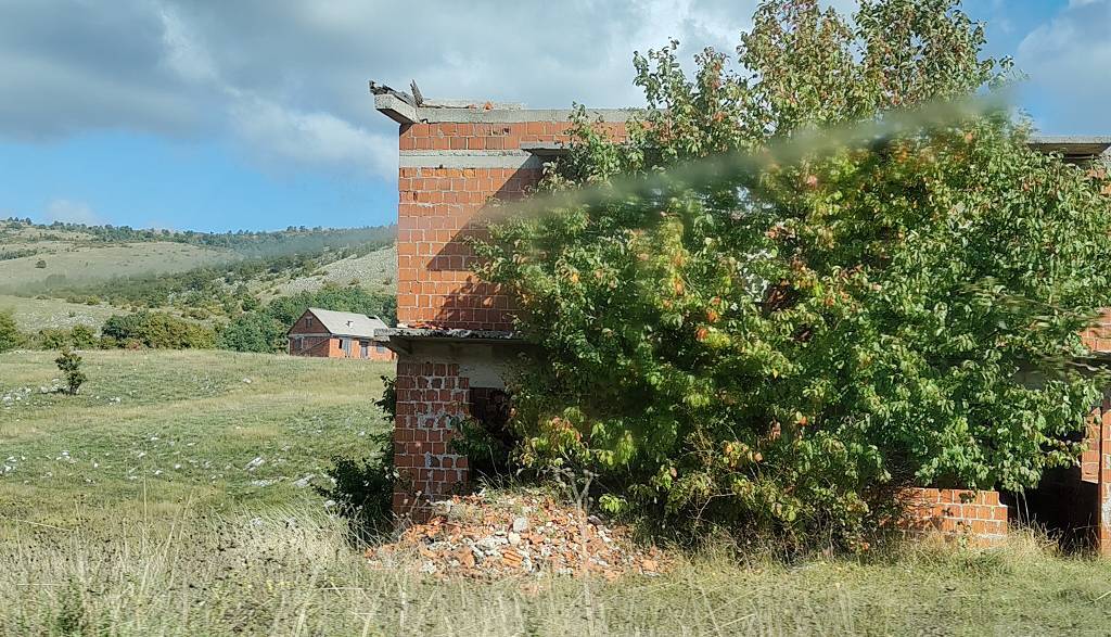 Wir sind immer noch in Bosnien-Herzegovina. Um 9h30 fahren wir vom Sportplatz ab, 14°, bewölkt bis sonnig. Bevor wir wirklich weiterfahren machen wir noch einen Stopp beim "KONZUM". Wir brauchen Brot. Unterwegs wird irgendwo Diesel getankt, à 1.18€ /Liter. Später fahren wir durch ein Tal, wo es auffallend viele zerfallende Häuser gibt. Um 13h30 sind wir beim "Natur Camp". Paul hat diesen Platz in unserer Camping-App gefunden. Ein Deutsches Paar aus Baden-Würtemberg betreibt den Platz. Der Mann teilt uns mit, dass er leider keine Camper mehr aufnehmen darf, weil er kein Restaurant habe. Hä??? Ja, die bosnischen Vorschriften seien so... Ok, dann fahren wir halt weiter. Er empfiehlt uns den Park "Cardaklije". Das sei zwar kein Camping, aber man dürfe dort stehen und es gäbe dort ein gutes Restaurant. Eine Stunde später sind wir beim Park "Cardaklije". Dies ist eine Art kleines Heimatmuseum mit Restauarant. Allerdings ist das Restaurant seit gestern bis zum 24.10. wegen Betriebsferien geschlossen. Schade! Aber wir dürfen trotzdem auf dem Parkplatz stehen bleiben und auch hier übernachten. Es ist bewölkt, 17° kalt und wir sind auf 650m Höhe.