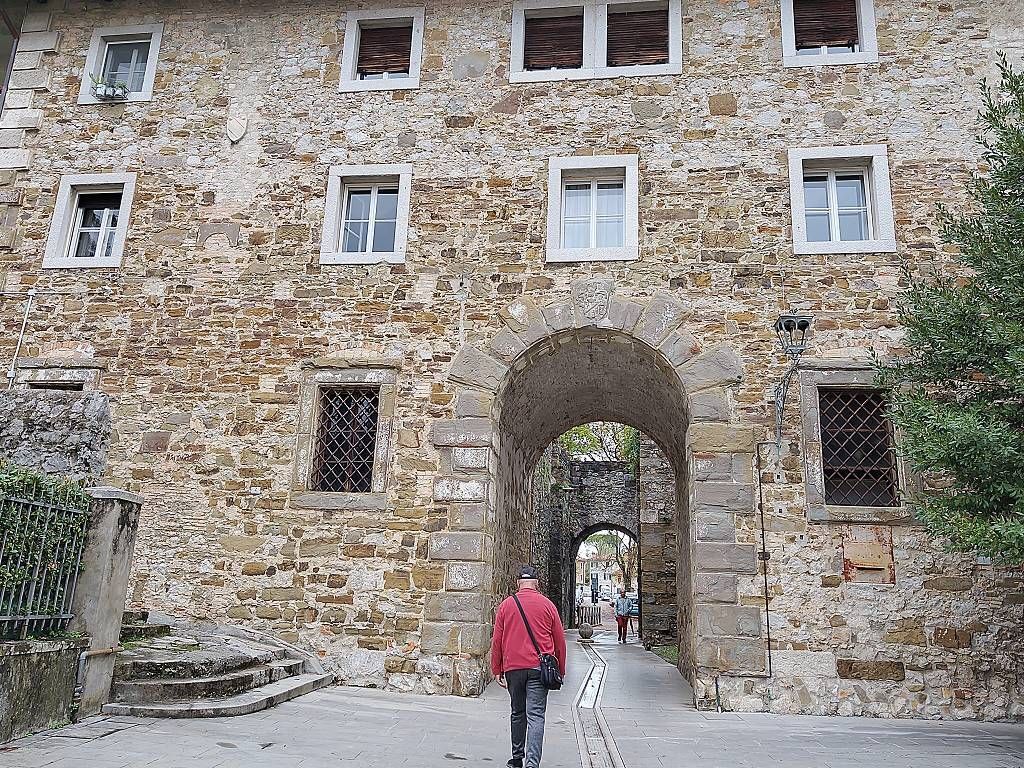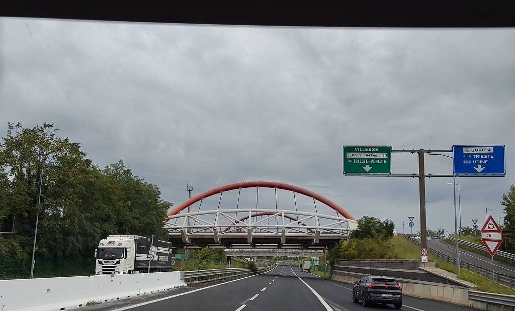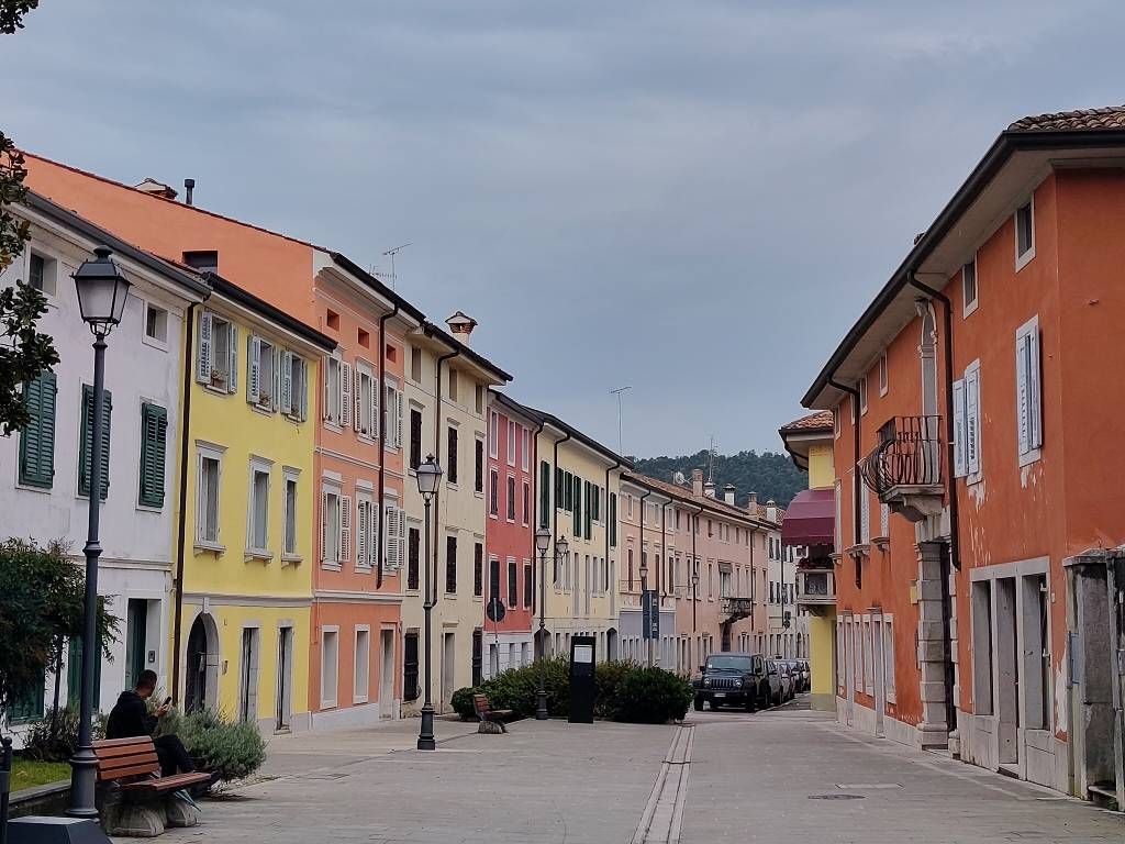 In der Nacht hat es mehrmals ein wenig geregnet. Als wir heute um 9h45 losfahren, ist es gerade mal 9° kalt und es regnet leicht. Nach einem Einkaufshalt geht es im Regen weiter nordwärts. Noch in Slovenien tanken wir Diesel auf, à 1.491€ / Liter. Nach dem Mittagshalt hört es auf zu regnen und um 14h sind wir wieder in Italien. Leider ist das Wetter hier auch nicht viel besser als in Slovenien, es tröpfelt immer wieder, aber es ist hier wenigstens wärmer, 17°. Um 14h20 sind wir im Ort Gradisca d’Isonzo auf einem Stellplatz. Wir laufen in die Altstadt. In einem Kleidergeschäft (das hat man uns so empfohlen) kaufe ich eine SIM-Karte für’s Internet. Ich bin ganze 50 Minuten in dem Geschäft bis der Papierkram endlich erledigt ist und das Internet funktioniert. Aber das Schöne ist, dass wir in Italien sind und ich wieder alles verstehe, was hier gesagt wird. Paul wartet unterdessen im Caffé Centrale auf mich.