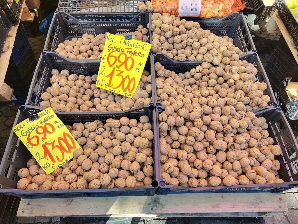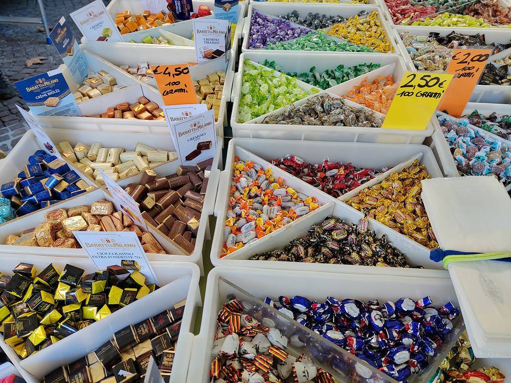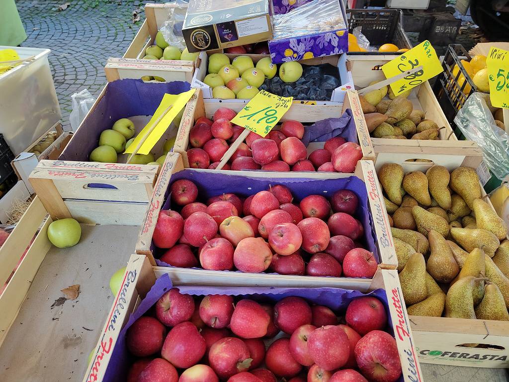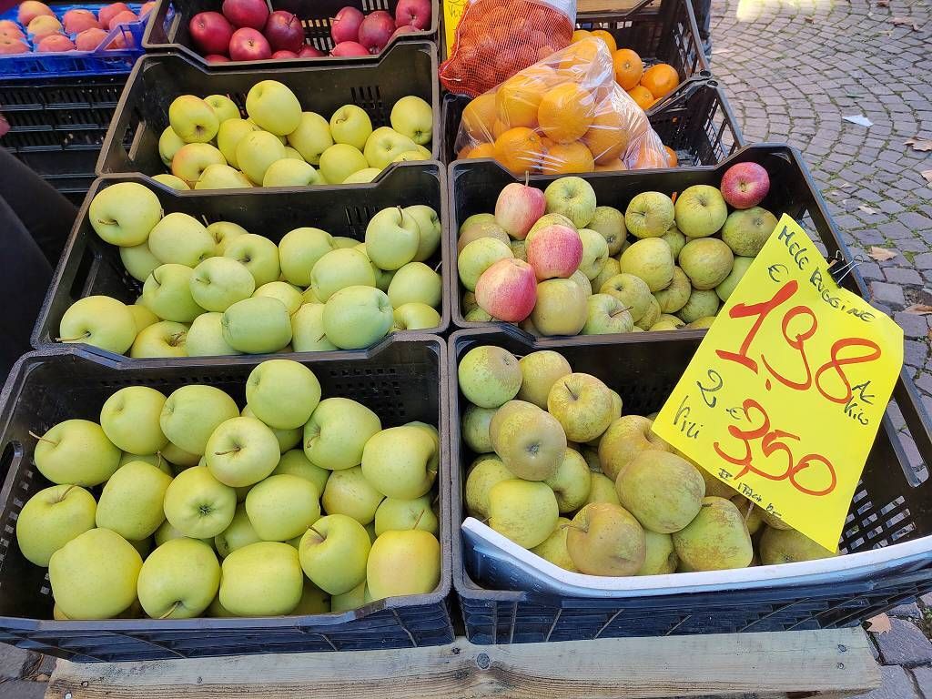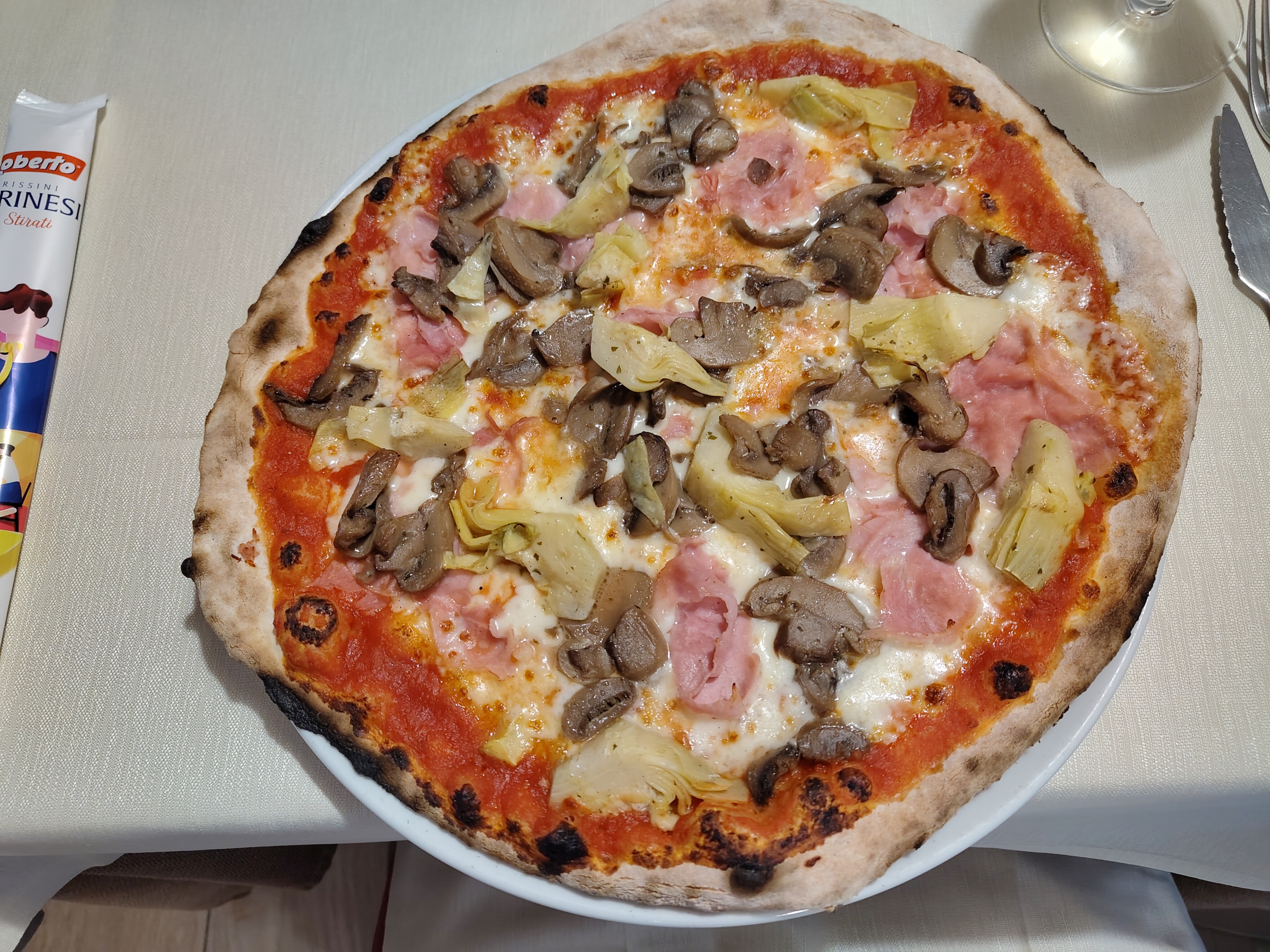 Heute starten wir wieder mit wunderbarem Sonnenschein in den neuen Tag. Als wir aufstehen, sind wir auf dem Riesen-Parkplatz total eingebunkert. Aber warum eigentlich? Was ist hier los? Wir haben keine Ahnung! Also laufen wir nach dem Frühstück einfach in die gleiche Richtung wie alle anderen Leute. Ja klar, des Rätsels Auflösung ist ganz einfach. In der Altstadt findet heute ein gewaltiggrosser Markt statt. Es hat Früchte, Gemüse, Fisch, Fleisch, Kleider, Schuhe und vielen Krimskrams den niemand braucht. Um 11h15 fahren wir weiter. In Bastia machen wir unsere Mittagspause. Und weil wir nun schon mal da sind, besuchen wir gleich noch die Riesenkirche. Von innen sieht sie überhaupt nicht so imposant aus wie von aussen. Im Caffé nebenan gibt es je einen Espresso und für mich ein «cornetto con crema». Mmmm! Um 14h15 sind wir schon in Sorio, beim Stellplatz für Camper beim Sportplatz. Die Sonne scheint, es ist ca. 18° warm, was will man mehr? Heute Abend werden wir Pizza mampfen gehen.
