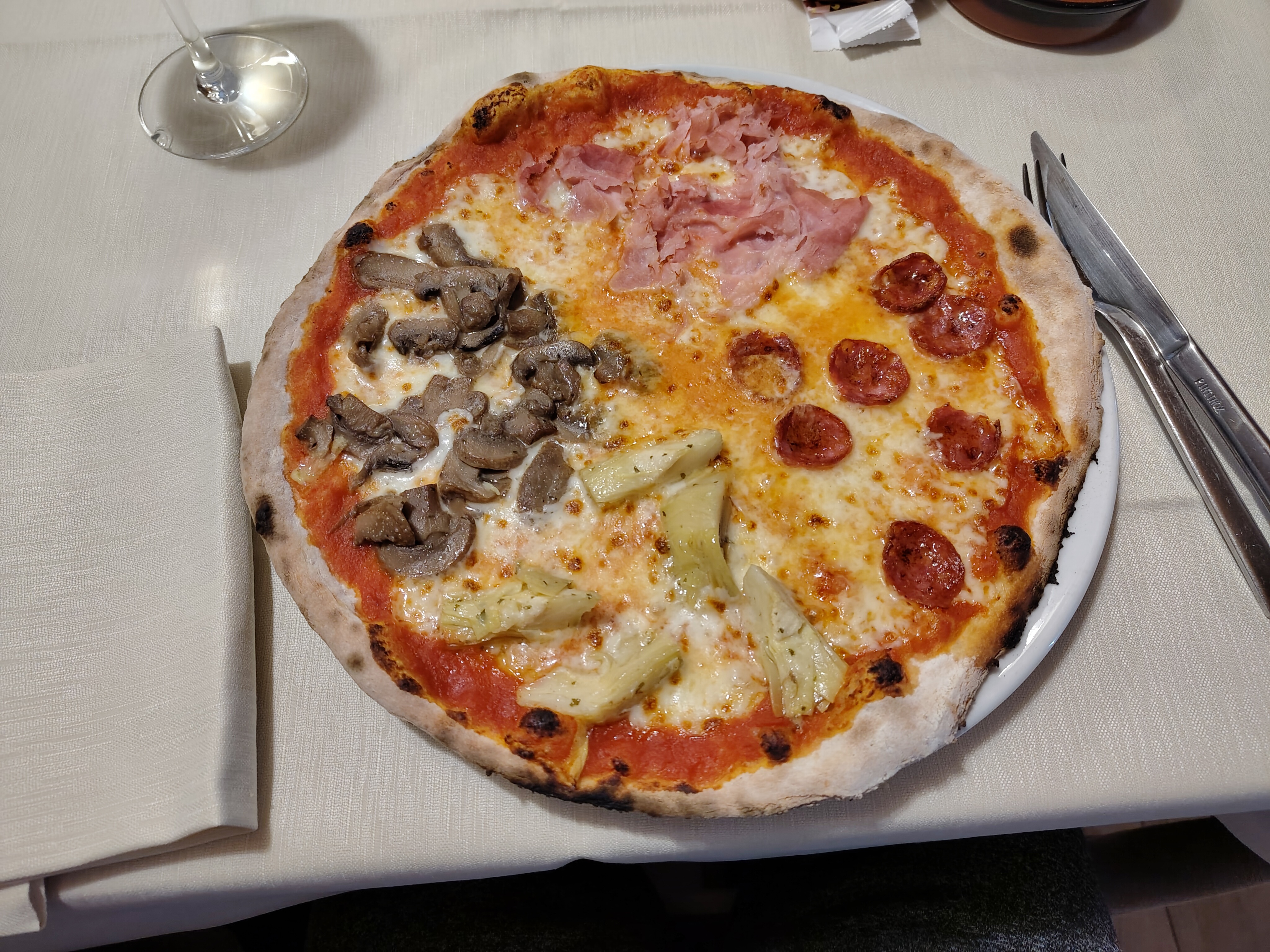 P.S. Das mit der Pizza essen egehn war gar nicht so einfach. Wir sind ca. 1km zu einer Pizzeria gelaufen, die geschlossen war: eine Baustelle ! Also kehrten wir um, zurück und ans ganz andere Ende des Ortes. Hier fanden wir endlich eine Pizzeria die geöffnet war, die «Pizzeria Mystic». Und die beiden Pizzen waren wirklich gut. Aber wir sind dafür ca. 4km gelaufen….