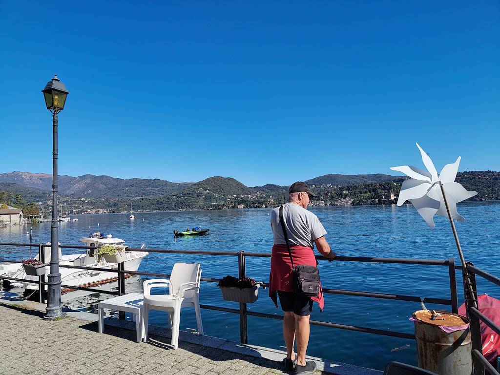 Nach einer sehr ruhigen Nacht erwachen wir auch heute wieder mit strahlendem Sonnenschein und kitschig blauem Himmel. Im Supermercato «Tigros» (ob der wohl mit der «Migros» verwandt ist?) erledigen wir einen kurzen Frischzeugeinkauf und fahren erst um 11h weiter. Punkt 12h sind wir schon an unserem heutigen Ziel, in Pella, am Lago d’Orta. Am Nachmittag machen wir einen Ausflug. Mit dem Schiff «Valentina» fahren wir von der Schiffsanlegestelle «San Filiberto» über den See, vorbei an der «Isola San Giuliano» nach Orta. Hier geniessen wir den herrlichen Sonnenschein, sitzen auf der Piazza um Bier zu trinken und schlendern durch den alten Ort. Es ist einfach nur schön! Irgendwann geht es wieder mit der «Valentina» zurück über den See. Bei der Hinfahrt waren wir die Einzigen, die bei «San Filiberto» eingestiegen sind und jetzt bei der Rückfaht sind wir wieder die Einzigen die bei «San Filiberto» aussteigen möchten. Aber der Capitano brettert einfach an unserer Anlegestelle vorbei. Ich springe schnell zum Matrosen und frage «und San Filiberto?». Ah, meint er, wenn keiner an der Station wartet, wird nicht angelegt! Er sprintet hinauf zum Capitano, der reisst das Steuer herum und kehrt extra wegen uns nach «San Filiberto» zurück…. Wir kommen glücklich und zufrieden wieder beim BONSAI an. Was für ein wunderschöner Ausflug!