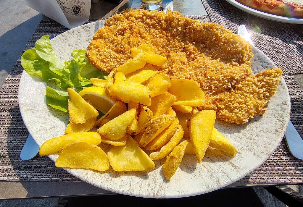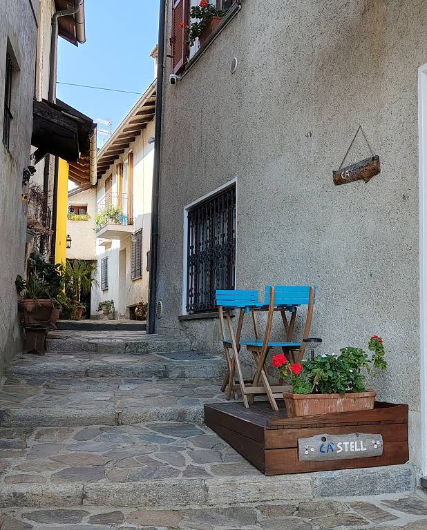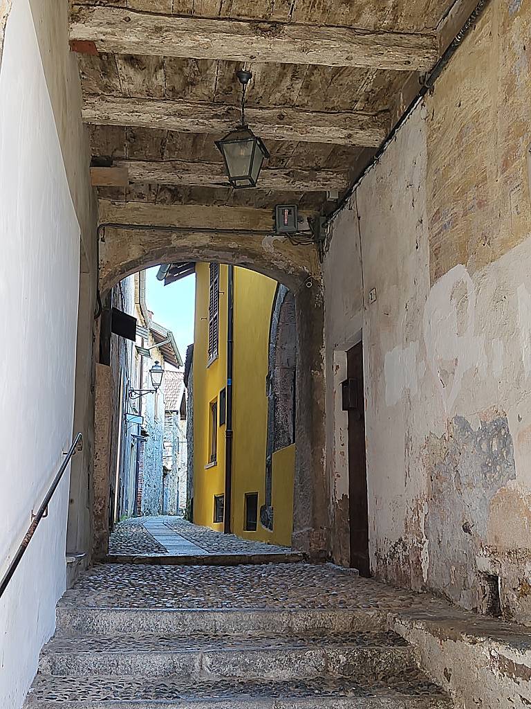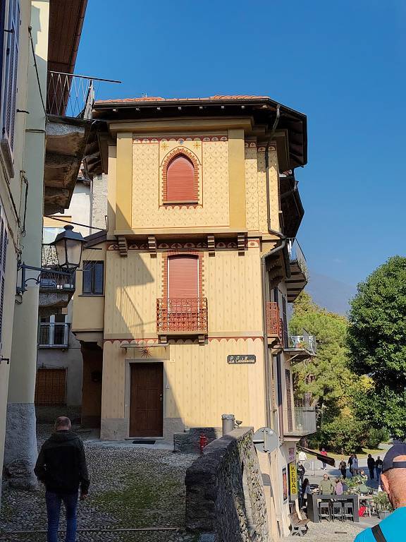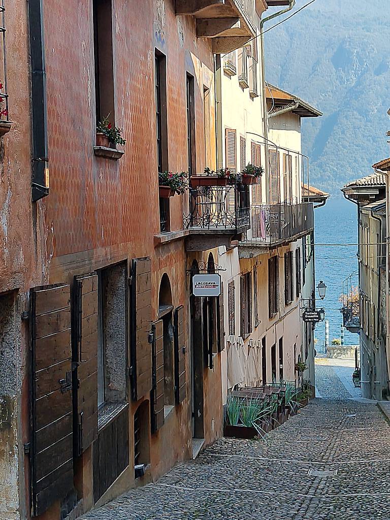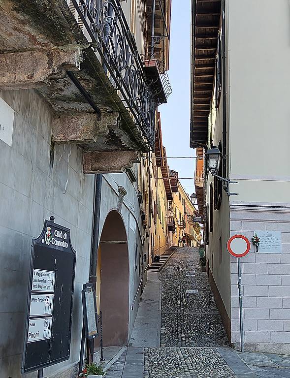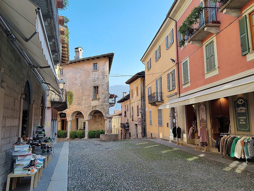 Um 11h erreichen wir die Schiffsanlegestelle von Luino. Wir haben keine Ahnung, wann die Schiffe fahren. Ein Schiff liegt am Steg und die Mannschaft sagt uns, dass sie nach Cannobio fahren. Ich spurte ins Zahlhäuschen und kaufe zwei Tickets für uns. Das Schiff wartet extra auf uns, bis wir eingestiegen sind und fährt dann sofort los. Das nennt man vielleicht einen Service !!! Auf der anderen Seeseite, im italienischen Cannobio (nicht zu verwechseln mit dem schweizerischen Canobbio) steigen wir aus. Wir bummeln ziellos herum, geniessen das herrliche Wetter mit etwa 22° und essen an der Seepromenade zu Mittag. Danach schauen wir uns die andere Hälfte des Dorfes an (jetzt weht ein richtig kalter Wind) und nehmen das 15h30 Schiff zurück nach Luino. Schön war’s da drüben!