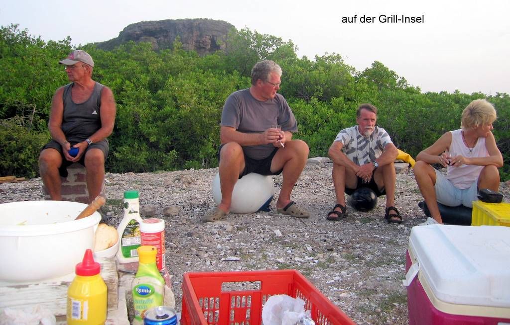 Es hat sehr viel Wind, in der Nacht waren bis zu 30 Knoten in den Böen. Die Wäsche wird heute wieder mal dreifach mit Wäscheklammern gesichert. Am Nachmittag, kurz nach 14h, kommen die „sail away“ mit Anne und Werner und die „Amiga“ mit Wolfgang, aus Bonaire, hier an. Sie ankern in unserem Ankerfeld. Abends ist grillen angesagt. Wir sind 3 Kinder, 22 Erwachsene und 2 Hunde, Chica und der amerikanische Pudel Tiger Woods. Es ist fast Vollmond und sehr schön. Es hat Franzosen, Schweizer, Deutsche (die absolute Mehrheit), wir haben Anne, Werner und Wolfgang einfach auch mitgenommen. Michelle, die Australierin, sowie Dave und Howard, die zwei Amerikaner. Apropos Amerikaner: gestern Abend hat eine Gruppe Amis, alle unsere Bretter, die uns als Bänke und Tisch dienten, verbrannt, die Steine von der Feuerstelle weggeschmissen und dafür einen Haufen Abfall da gelassen. Toll! Unsere Männer mussten neue Bretter und Steine organisieren und Marlene und Ursula haben den Müll zusammen geräumt.