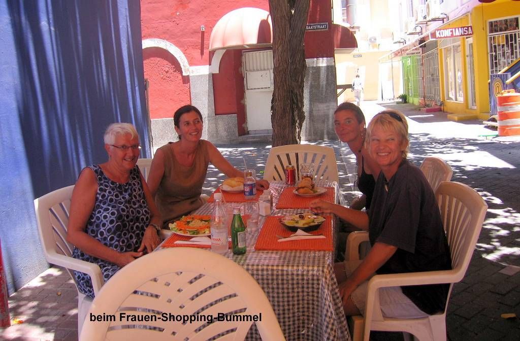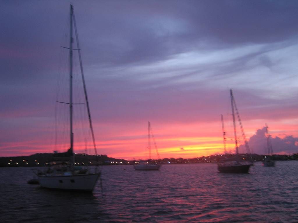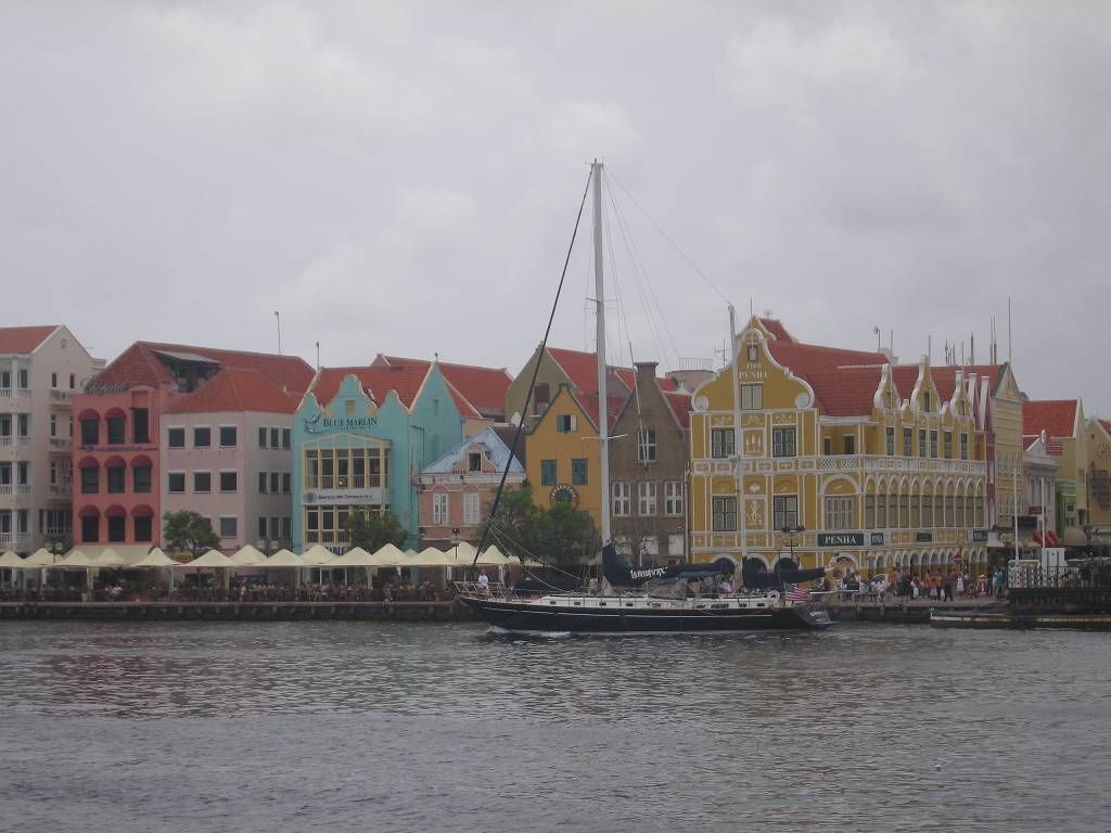 Gegen 11h werde ich von Ursula (KRILL), Birgitt (ELSA) und Christa (CAROONA) mit dem Dinghy abgeholt. Eigentlich bin ich immer noch k.o. von gestern, aber wir machen uns einen gemütlichen ½-Frauen-Tag und fahren per Bus in die Stadt zum shoppen. Zuerst essen wir unter schattigen Bäumen bei einem italienischen Restaurant eine Kleinigkeit. Danach verlassen wir den Stadtteil Punda und fahren mit der Fähre in den Stadtteil Otrobanda. Die Brücke ist wegen eines enorm riesigen Tankers aus Nassau (Bahamas), der ins Meer raus fährt, geöffnet. In Otrobanda schauen wir uns in diversen Läden um und trinken später gemütlich noch zusammen einen Kaffee. Mit dem 16h-Bus geht es zurück nach Spanish Water und zu unseren Schiffen. Ich habe einen besonders grossen Einkauf getätigt, nämlich eine Knopfbatterie für den Taschenrechner! Aber schön war's!!!
