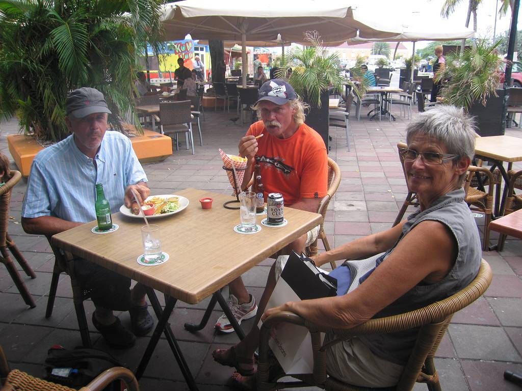 Paul und ich müssen noch zur Bank in Willemstadt. Danach essen wir im Promenade Shopping Pommes und Bitterballen (holländische Fleischkugeln). Den Kaffee gibt es in der schönen Innenstadt in Punda.