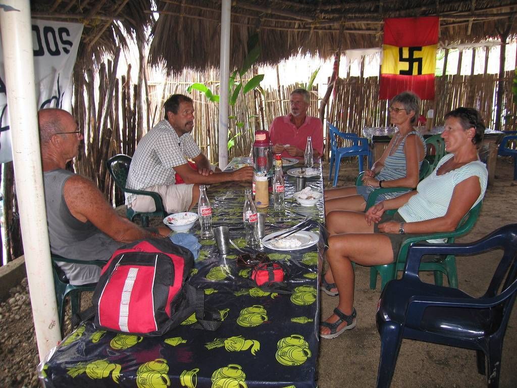 Im „Hotel“, bei Pablo, essen wir in einer schönen Strohhütte zu Abend. Es sind zwei Gäste, Frauen aus Paris, anwesend, die hier in den beiden vorhandenen Bambushütten-Zimmern übernachten.