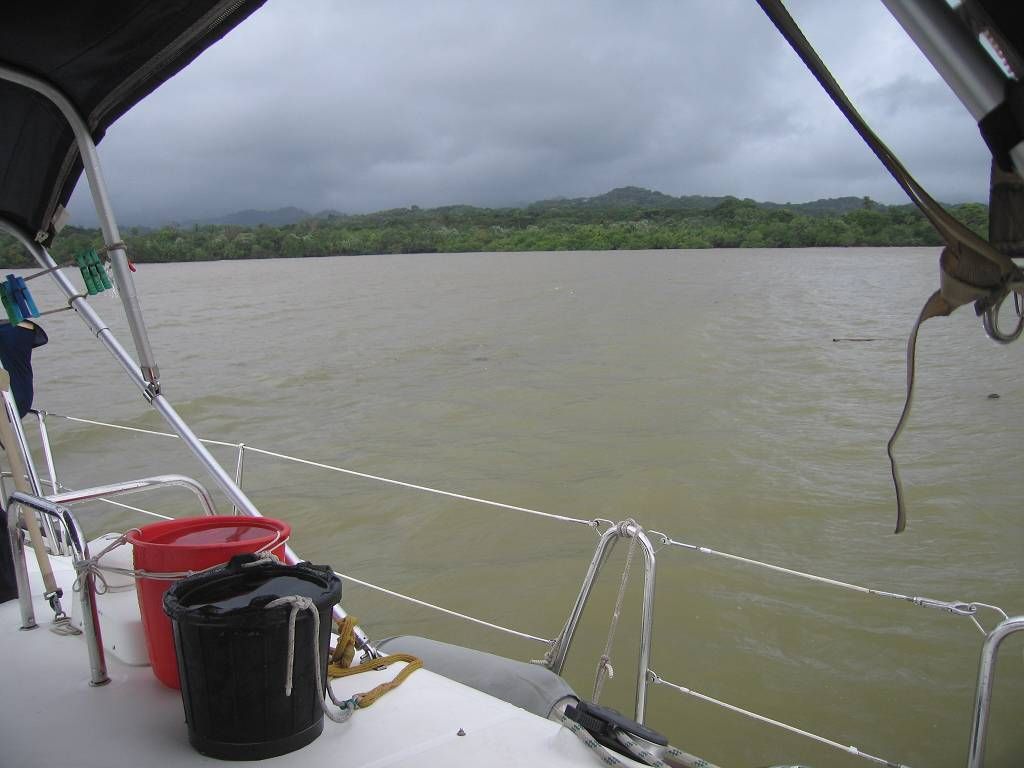 Morgens um 5h regnet es noch, aber dann hört es doch langsam auf. Es regnet zwar immer wieder, aber doch nur sehr wenig. Wir würden eigentlich sehr gerne von hier weg fahren, aber Beat sagt uns am Funk, dass es dort wo er ist, 10sm weiter, total regnet. Gut, dann bleiben wir lieber hier und warten auf bessere Zeiten.