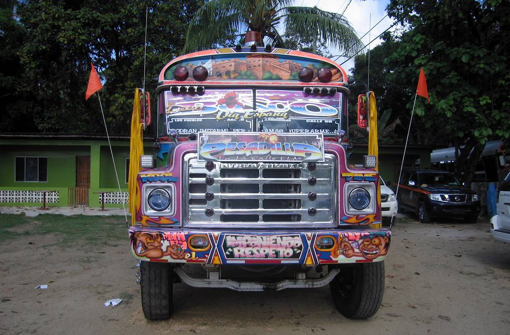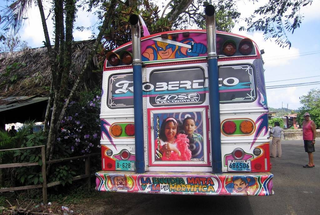 Um 9h sitzen wir schon im Bus nach Sabanita. 12 km vor Colon. Wir haben Glück und haben beide einen Sitzplatz. Die über 50-minütige Fahrt kostet 1$. Die Musik im Bus ist höllenlaut! Wir wollen zum „REY“-Supermarkt, ein bisschen einkaufen. Das könnten wir zwar auch in Portobelo bei den Chinesen, aber wir fahren gerne Bus um uns die Gegend und die Leute anzuschauen. In Sabanita brauchen wir dringend eine Toilette und gehen deshalb in eine Bäckerei. Paul trinkt eine Dose Cola und ich einen grossen Becher Kaffee. Dazu essen wir ein Stück Kuchen und ein Riesen-Prussien. Beim Bezahlen will es mich wieder mal fast aus den Sandalen hauen. Alles zusammen kostet 1.80$.