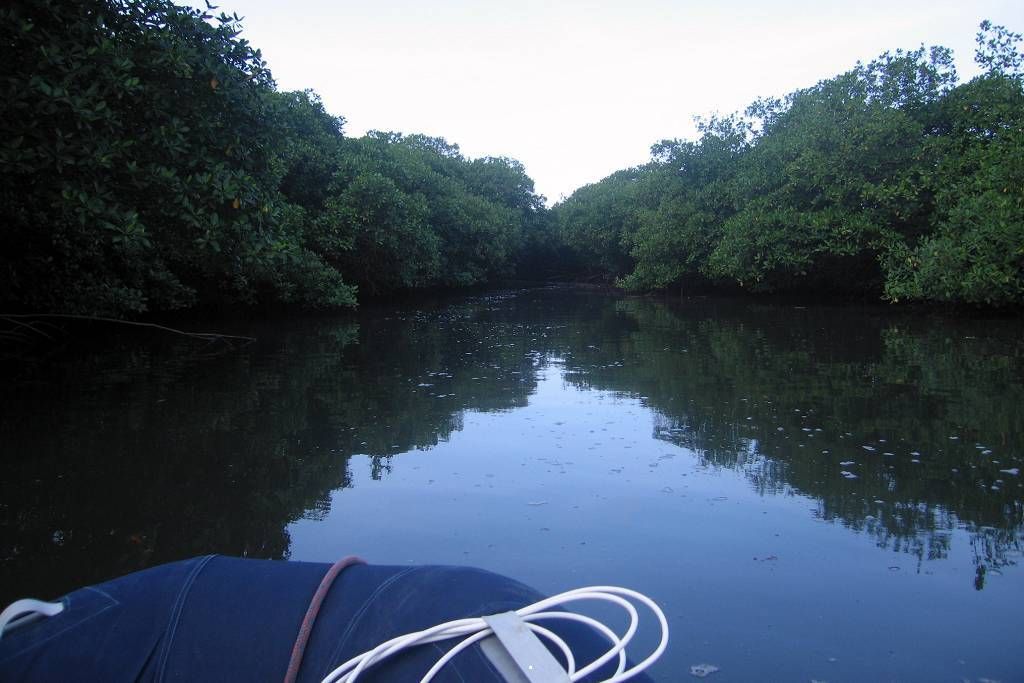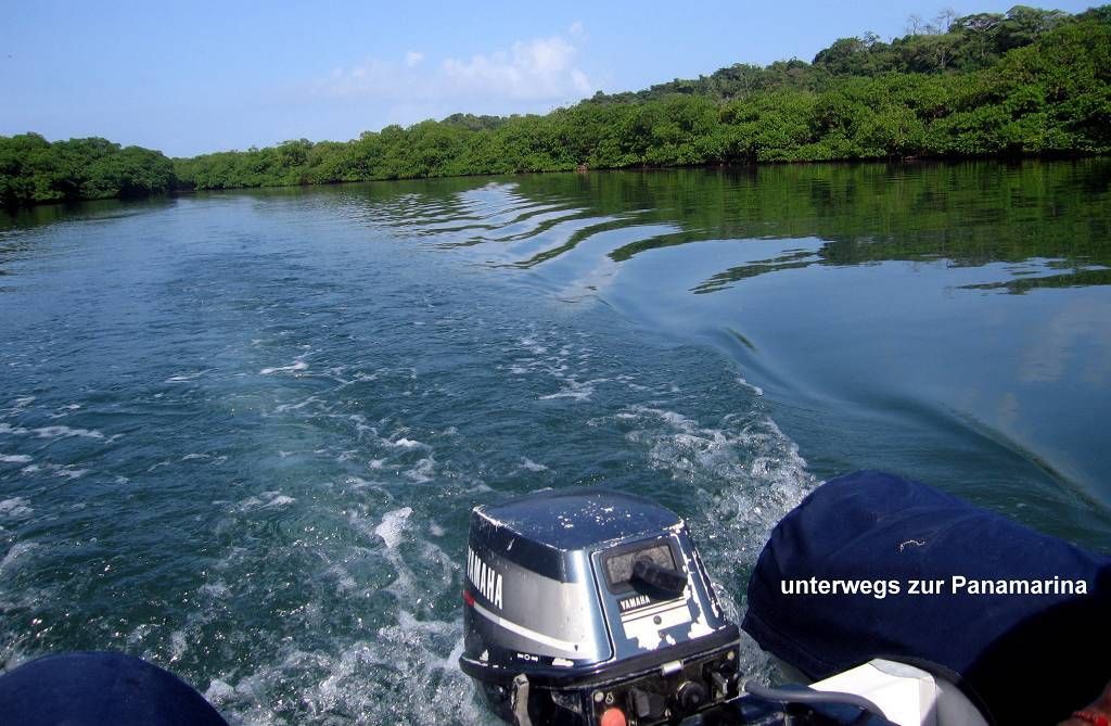 Trotz Geschaukle haben wir recht gut geschlafen. Kunststück, nach dem Gewaltsmarsch von gestern. Schliesslich sind wir seit Cartagena (seit dem 17.November) nie mehr so richtig gelaufen. Aber heute nehmen wir es ein wenig gemütlicher. Nach dem Frühstück machen wir eine Dinghy-Exkursion zur „Panamarina“. Man fährt durch einen langen Tunnel aus Mangroven und es ist wunderschön, wie übrigens auch das heutige Wetter. Wir drehen eine Runde in der „Panamarina“ und kehren dann durch die Mangroven-Passage wieder zurück zu unserem Ankerplatz bei der Insel Linton. Wir kurven ein wenig durch das Ankerfeld und schauen uns die Schiffe an. Mann oh Mann, da hat es vielleicht ein paar Gammel-Schiffe dabei! Auf die Isla Linton gehen wir nicht. Scheinbar hat es dort Äffchen, die einem beissen. Für das Mittagessen tuckern wir später wieder zum Dorf Puerto Lindo, zur „Casa X“, wo wir beim Holländer essen. Danach spazieren wir durch den eher trostlosen und sehr schmutzigen Ort Puerto Lindo (heisst hübscher Hafen!). Die Villen der Reichen aus Panama City liegen etwas ausserhalb des Dorfes! Nach einer Tasse Kaffee in der „Casa X“ geniessen wir ein herrlich kühles Bad im Meer, die wunderbare Sonne und das Faulenzen auf der MABUHAY.