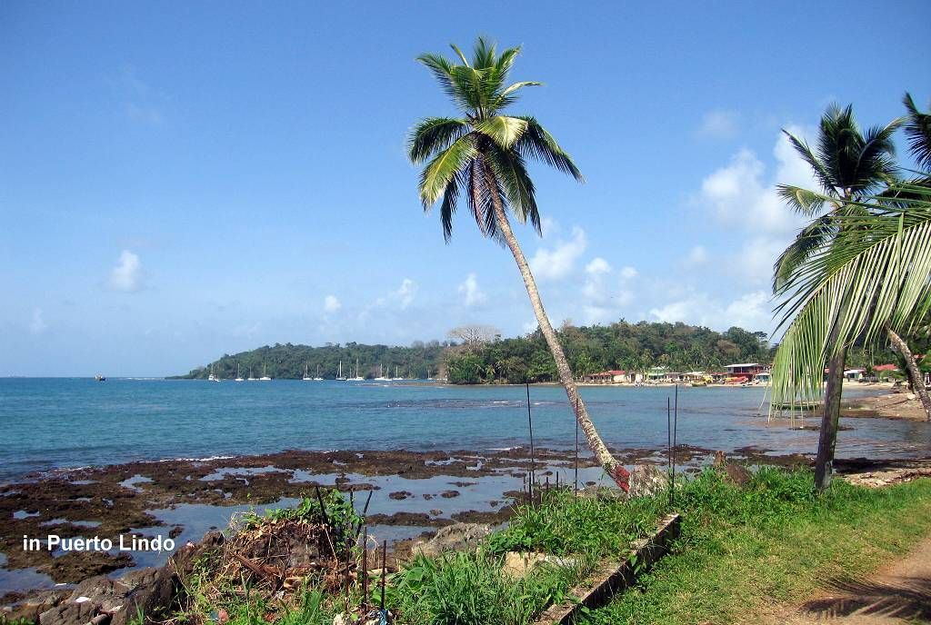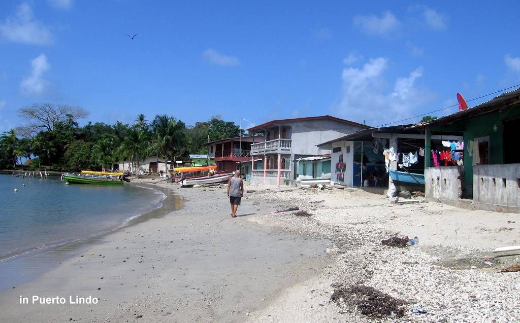 Um 15h15 ankern wir zwischen der Insel Linton und dem winzigen Festland-Örtchen Puerto Lindo. Hier liegen bestimmt schon über 50 Schiffe vor Anker. Wir sind kaum eine Stunde da, kommt schon ein Dinghy mit zwei Franzosen angebraust. Die zwei Männer schenken uns ein grosses Stück des Barakudas, den sie gefangen haben.