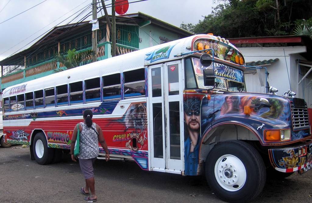 Nach einem kurzen Einkauf bei „REY“, nehmen wir den Bus zurück nach Portobelo. Jetzt stehen wir wie die Sardinen im Bus. Einige Leute hängen während der Fahrt noch draussen am Trittbrett. Eine junge Frau nimmt meinen Rucksack und Paul's Tasche auf den Schoss. Irgendwann kann ich einen ¼ Sitzplatz ergattern. Nun sitze ich neben einem XXXXL-Mann und einem kleinen Mädchen, das schlafen möchte. Mit einer ½ Hinterbacke klebe ich auf dem Plastiksitz. Es ist sehr mühsam und ich bin sehr froh, als wir nach ca. 1½ Stunden in Portobelo aussteigen können. Jetzt kaufen wir beim Chinesen noch eine 25-kg-Gasflasche (Tropi-Gas), die Paul auf dem Buckel zum Dinghy schleppt und auf der MABUHAY sofort anschliesst.
