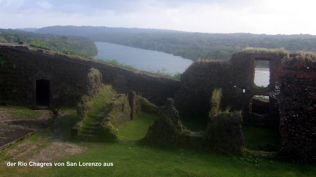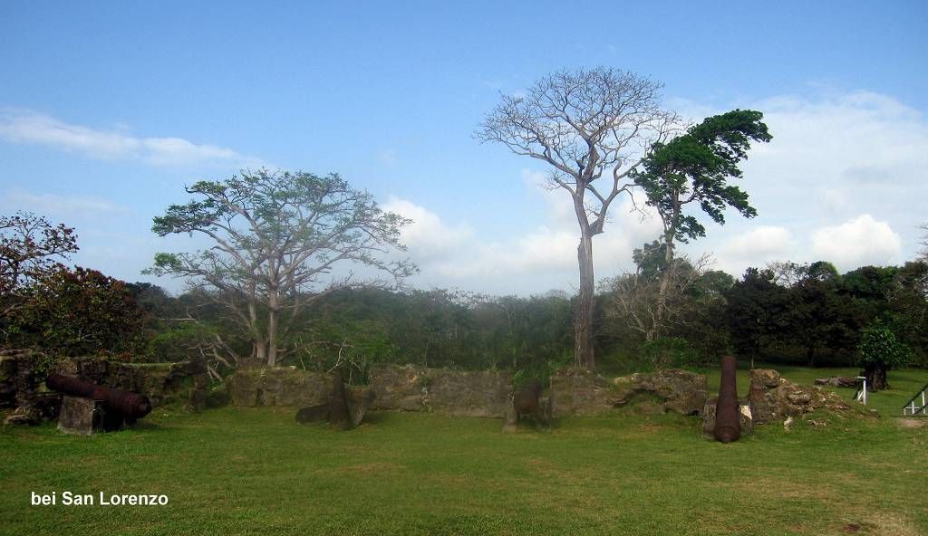 Auf einer ziemlich rauhen Teerstrasse fahren wir durch den Regenwald dahin. Die Strasse steigt langsam aber stetig an. Paul jammert ständig über die unpassende Geometrie des Velos. Aber irgendwie schaffen wir die Strecke doch noch und kommen nach einer knappen Stunde beim Fort an. Wir sind fast die einzigen Besucher, nur ein Auto mit einem Fotografen und einem, unserer Vermutung nach, Model oder etwas Ähnlichem, sind da. Das Fort ist sehr schön gepflegt, der Rasen rundherum sauber gemäht und weit und breit KEIN Müll!!! Von hier oben hat man eine wunderschöne Aussicht auf den Rio Chagres.