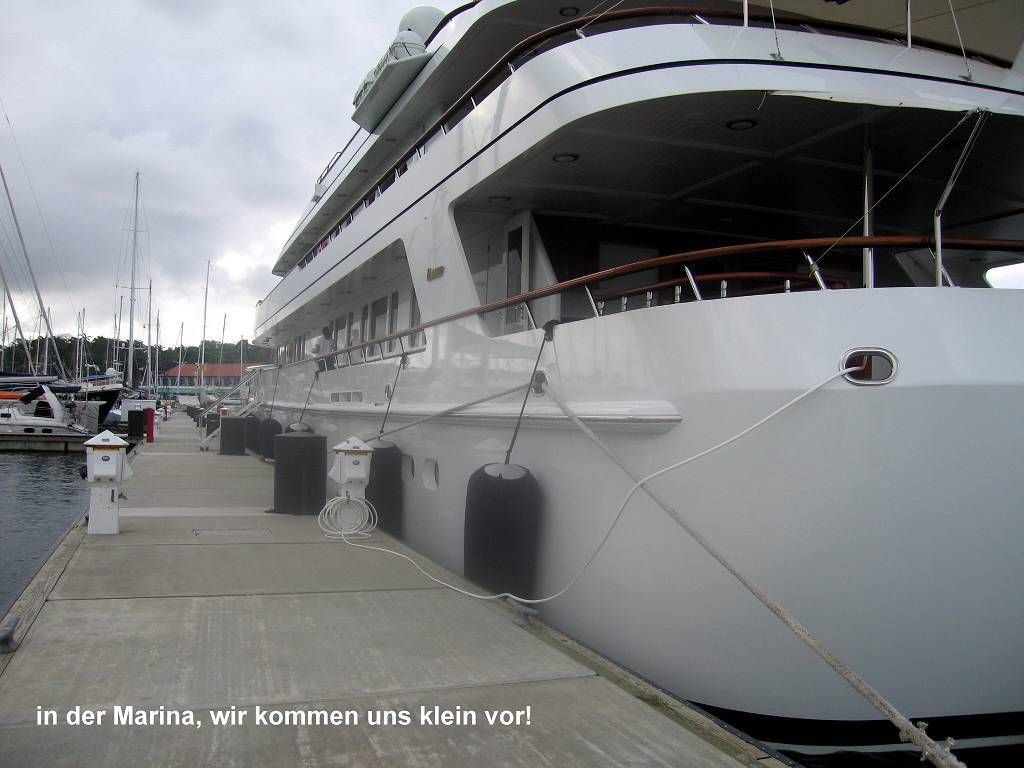 Die „sail away“ mit Anne und Werner liegt ein paar Schiffe weiter am gleichen Steg. Wir melden uns bei ihnen und trinken zusammen einen Kaffee. Die beiden teilen uns mit, dass die „Nicone“ auch hier sei und dass uns Leena und Peter unbedingt sehen wollen. Wir finden die „Nicone“, aber die beiden sind nicht zu Hause und wir legen ihnen einen Zettel ins Boot mit unserer Platznummer.