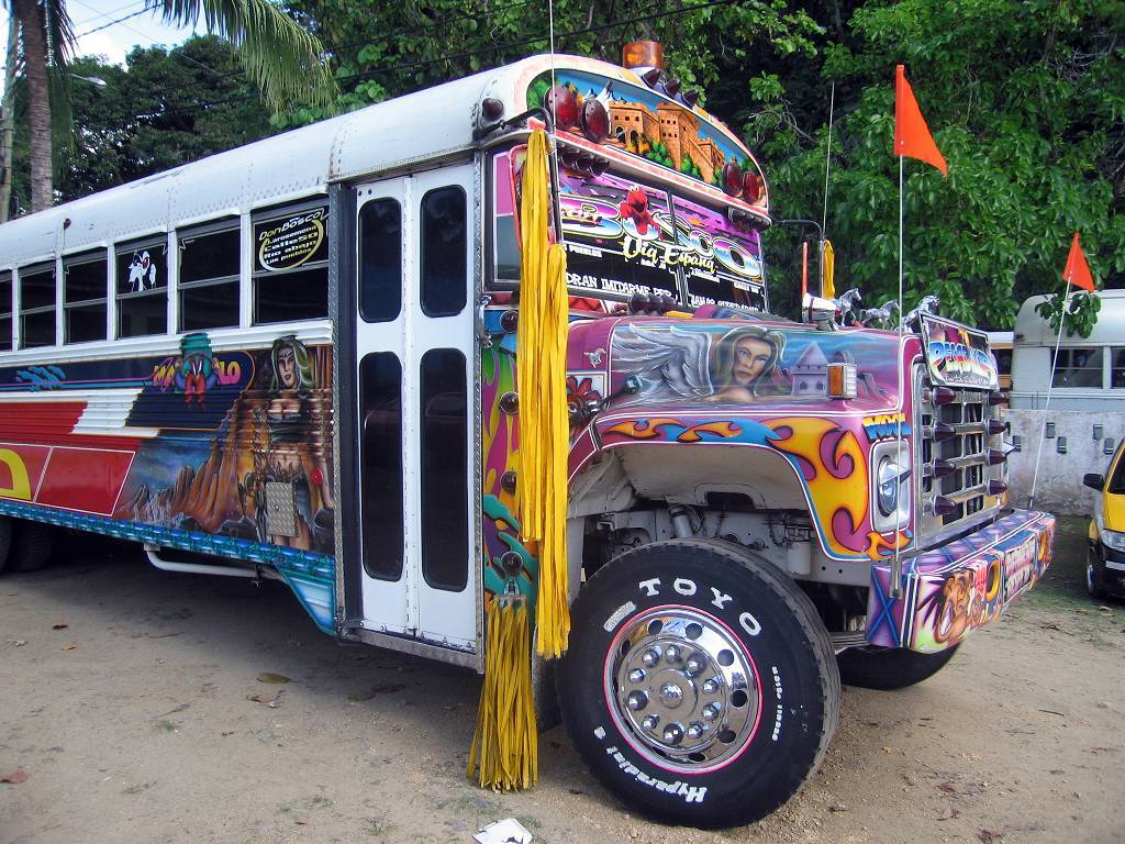 Nach einem kurzen Einkauf bei „REY“, nehmen wir den Bus zurück nach Portobelo. Jetzt stehen wir wie die Sardinen im Bus. Einige Leute hängen während der Fahrt noch draussen am Trittbrett. Eine junge Frau nimmt meinen Rucksack und Paul's Tasche auf den Schoss. Irgendwann kann ich einen ¼ Sitzplatz ergattern. Nun sitze ich neben einem XXXXL-Mann und einem kleinen Mädchen, das schlafen möchte. Mit einer ½ Hinterbacke klebe ich auf dem Plastiksitz. Es ist sehr mühsam und ich bin sehr froh, als wir nach ca. 1½ Stunden in Portobelo aussteigen können. Jetzt kaufen wir beim Chinesen noch eine 25-kg-Gasflasche (Tropi-Gas), die Paul auf dem Buckel zum Dinghy schleppt und auf der MABUHAY sofort anschliesst.