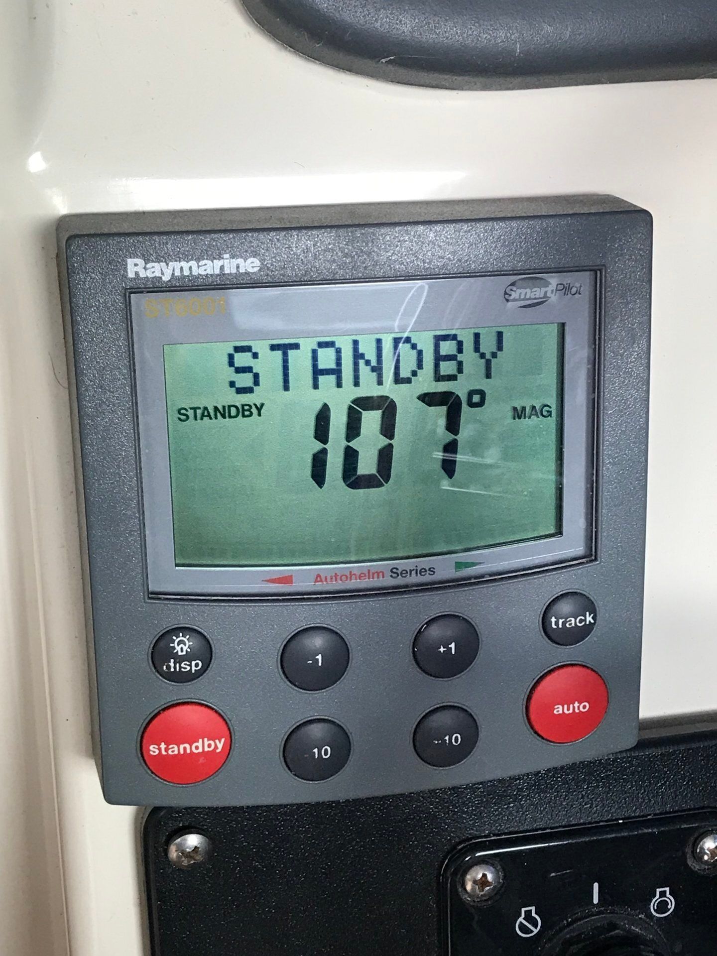 Paul schliesst das Bedienteil des Autopiloten an und den ganzen Tag testen wir ob es funktioniert. Und? Jawoll, es scheint wirklich zu arbeiten, wie es sich gehört!!! Puhhh, endlich!