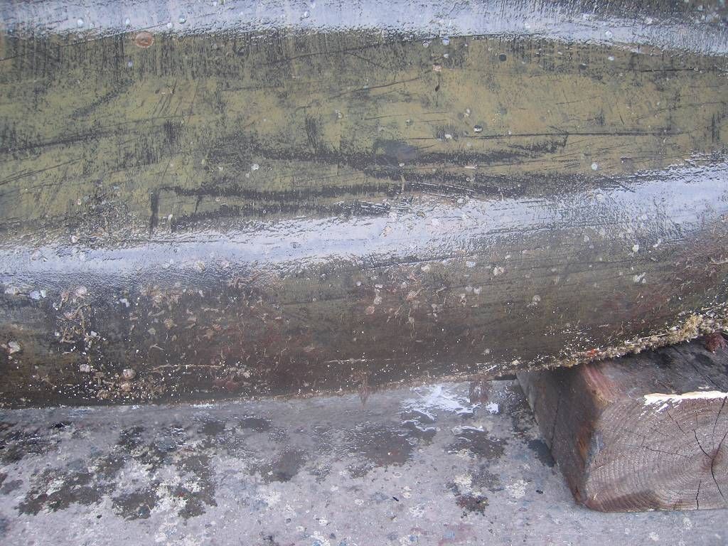 Punkt 14h legen wir los mit Arbeiten. Paul zieht einen Arzt-Gummihandschuh über seine verletzte Hand. Dieser Handschuh ist übrigens innerhalb von Minuten total zerrissen. Wir spachteln und kratzen wie die Verrückten an der MABUHAY herum und lösen die letzten Muscheln die sich an ihr festgesetzt haben. Die hat aber auch einen grossen Bauch! Nun schleifen wir noch mit grobem Schleifpapier von Hand an ihr herum, bis wir beide total schwarz sind vor lauter Schleifstaub. Nach drei Stunden intensiver Arbeit, ohne Pause, ist die MABUHAY bereit angestrichen zu werden und wir benötigen DRINGENDST eine Dusche!