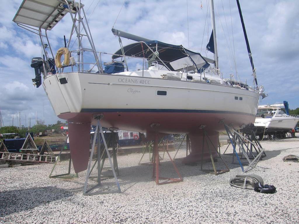 Um 12h10, wir haben soeben ein Sandwich verdrückt, kommt endlich der Werft-Manager Dave und teilt uns mit, dass wir jetzt zur Werft rüber fahren können. Die Schweizer vom Schiff Reine Marguerite warten schon in den Startlöchern, um mit ihrem Schiff an unseren freiwerdenden Liegeplatz zu fahren.