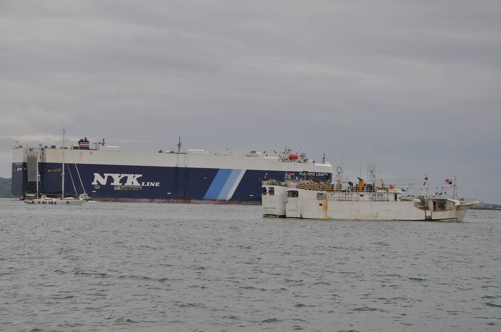 Puhh, es gibt viel zu tun: zwei Mahlzeiten vorkochen, letzte Wäsche waschen und sie zum ersten Mal in meinem Leben in einen Wäschetrockner schmeissen, Betten frisch beziehen für unsere Linehandler und noch schnell duschen. Paul hat inzwischen die 12 Autopneus rund um die MABUHAY befestigt, die den Rumpf vor Schäden im Kanal schützen sollen. Er lässt die Luft am Dinghy raus, damit wir an Bord mehr Platz haben. Er kontrolliert nochmals den Motor und alles ist in bester Ordnung. Marcus und Jessi sind am Pool und üben noch ein paar Runden schwimmen. Daniela und Beat, unsere Linehandler kommen an Bord und um 11h30 lösen wir die Leinen und verlassen die Shelter Bay Marina.