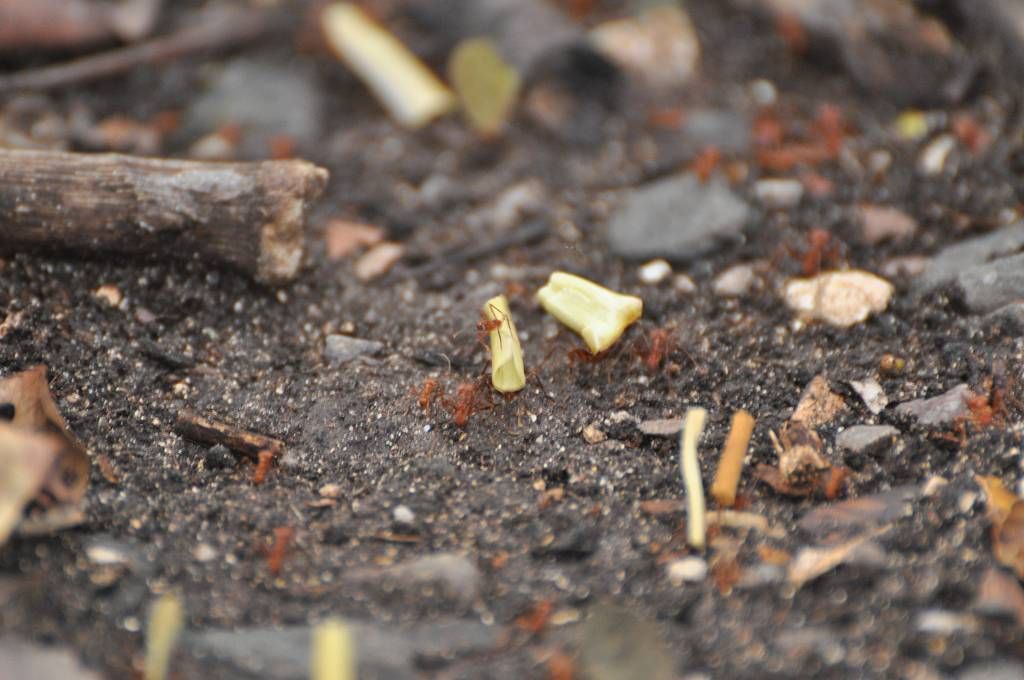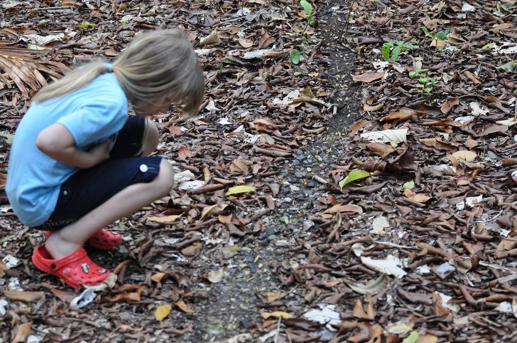 Am Nachmittag machen Paul, Jessi und Marcus einen Waldspaziergang. Sie haben Glück und sehen einige Affen und eine Affenmutter mit Baby und ganz viele Blattschneider-Ameisen-Strassen.