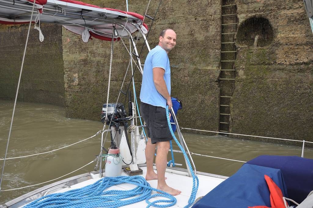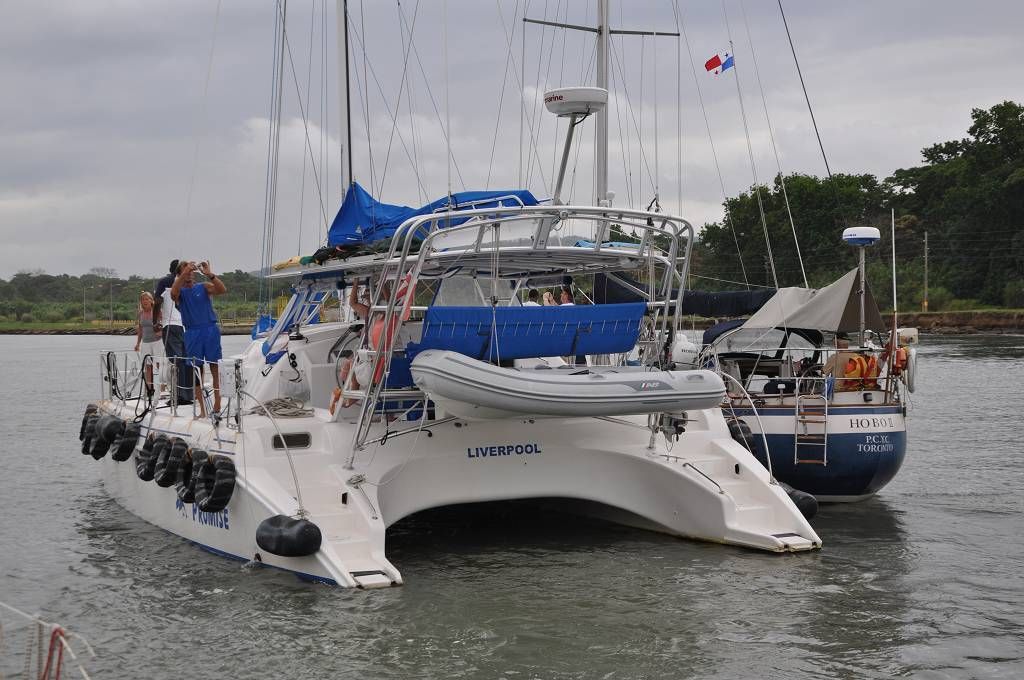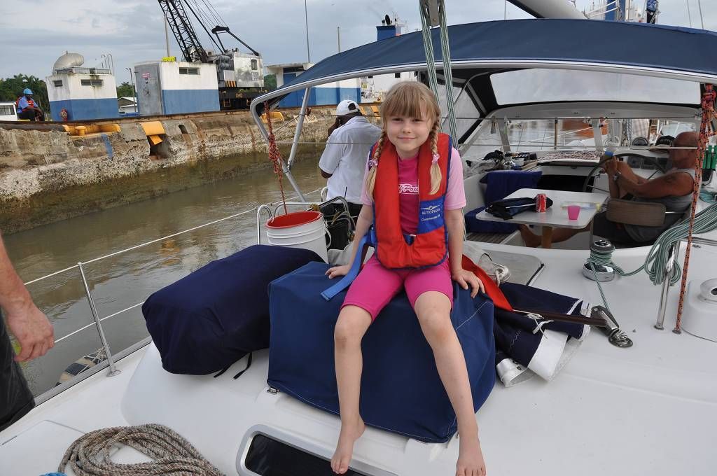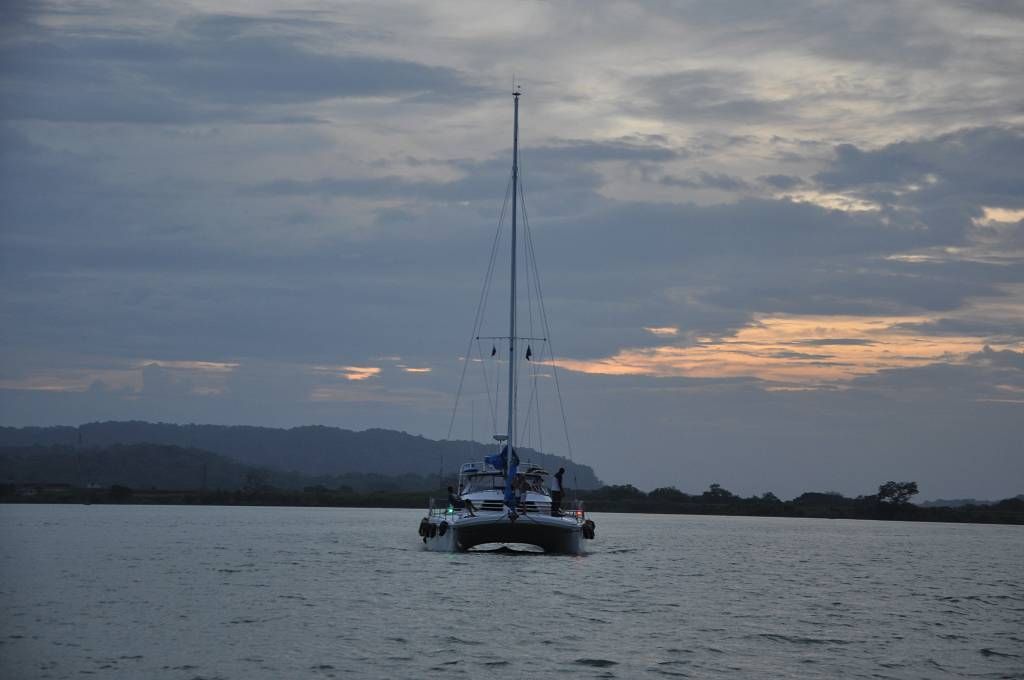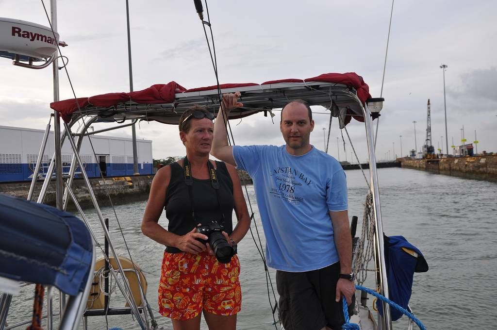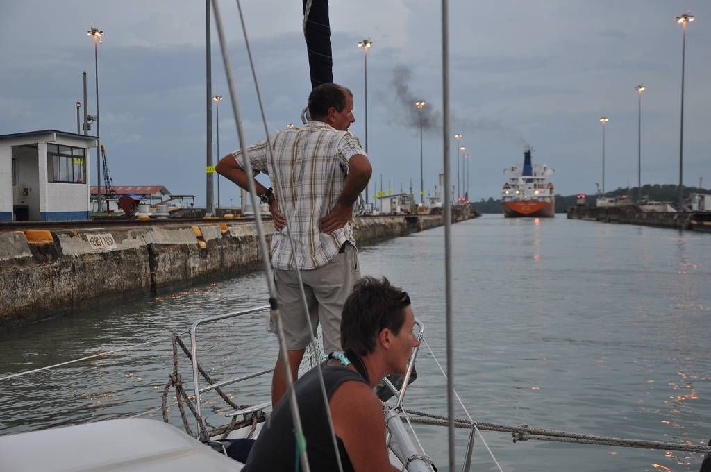 Um 16h kommt der Advisor George an Bord. Vor den Schleusen werden wir mit einem Katamaran und einem anderen Einrumpfsegler zusammengeschnürt. Auf dem Katamaran, der in der Mitte ist, befindet sich die jüngste Weltumseglerin, Laura Dekker, als Linehandlerin. Unser Skipper Paul flippt kurz aus, weil das Zusammenbinden nicht so klappt, wie ER sich das vorgestellt hat und an Bord der MABUHAY gibt es eine vorübergehende Missstimmung !!! Aber dann passieren wir die drei Gatunschleusen problemlos. Beat ist an der linken Bugleine, Marcus an der linken Heckleine. Jessi schaut dem Ganzen interessiert zu und beobachtet, wie die MABUHAY mit dem Wasser in die Höhe gehoben wird. Dies ist Paul's und meine 6. Kanaldurchfahrt. Und diesmal schaffen wir es doch tatsächlich, die Schleusen bei Tageslicht zu durchqueren. Um 18h45 machen wir an der roten Tonne im Gatunsee fest und der Advisor wird abgeholt. Aber bevor er abgeholt wird, bekommt er noch einen kalten Teller mit zünftig Fleisch und Käse, Tomaten und Gurken. So früh waren wir noch nie dran! Die Gemüter auf der MABUHAY haben sich wieder beruhigt und wir trinken in aller Gemütlichkeit ein Bier und essen zu Abend. Es gibt Farfalle mit Hackfleischsauce und zum Dessert Fruchtsalat mit Rahm.
