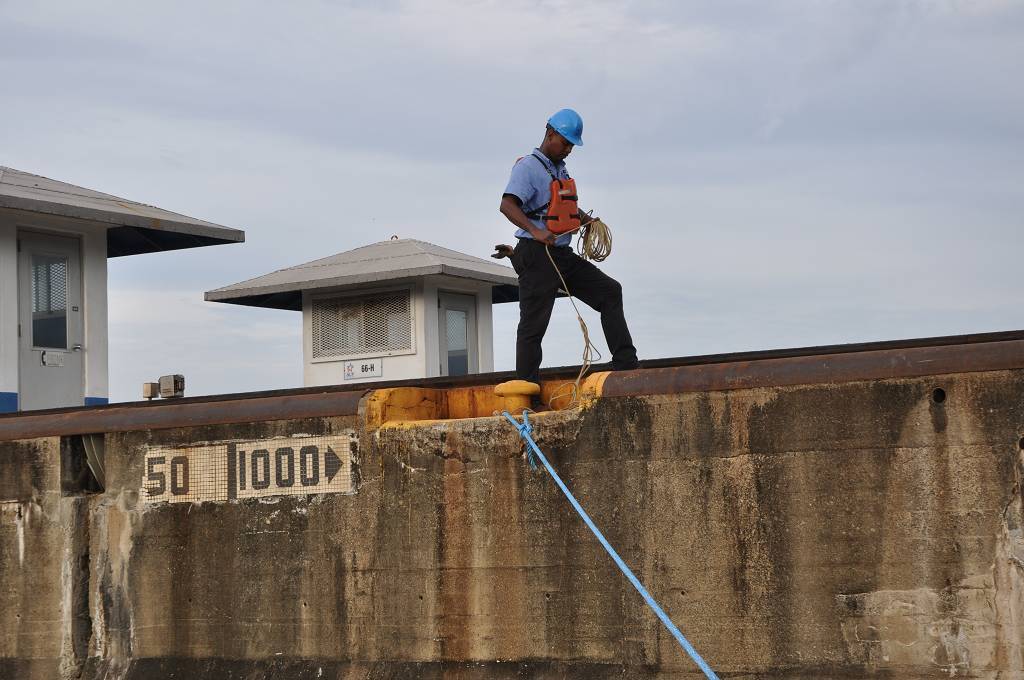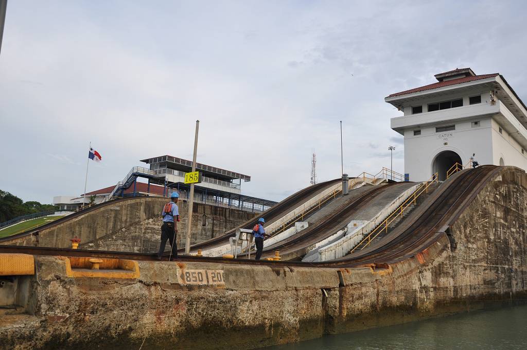 Um 16h kommt der Advisor George an Bord. Vor den Schleusen werden wir mit einem Katamaran und einem anderen Einrumpfsegler zusammengeschnürt. Auf dem Katamaran, der in der Mitte ist, befindet sich die jüngste Weltumseglerin, Laura Dekker, als Linehandlerin. Unser Skipper Paul flippt kurz aus, weil das Zusammenbinden nicht so klappt, wie ER sich das vorgestellt hat und an Bord der MABUHAY gibt es eine vorübergehende Missstimmung !!! Aber dann passieren wir die drei Gatunschleusen problemlos. Beat ist an der linken Bugleine, Marcus an der linken Heckleine. Jessi schaut dem Ganzen interessiert zu und beobachtet, wie die MABUHAY mit dem Wasser in die Höhe gehoben wird. Dies ist Paul's und meine 6. Kanaldurchfahrt. Und diesmal schaffen wir es doch tatsächlich, die Schleusen bei Tageslicht zu durchqueren. Um 18h45 machen wir an der roten Tonne im Gatunsee fest und der Advisor wird abgeholt. Aber bevor er abgeholt wird, bekommt er noch einen kalten Teller mit zünftig Fleisch und Käse, Tomaten und Gurken. So früh waren wir noch nie dran! Die Gemüter auf der MABUHAY haben sich wieder beruhigt und wir trinken in aller Gemütlichkeit ein Bier und essen zu Abend. Es gibt Farfalle mit Hackfleischsauce und zum Dessert Fruchtsalat mit Rahm.