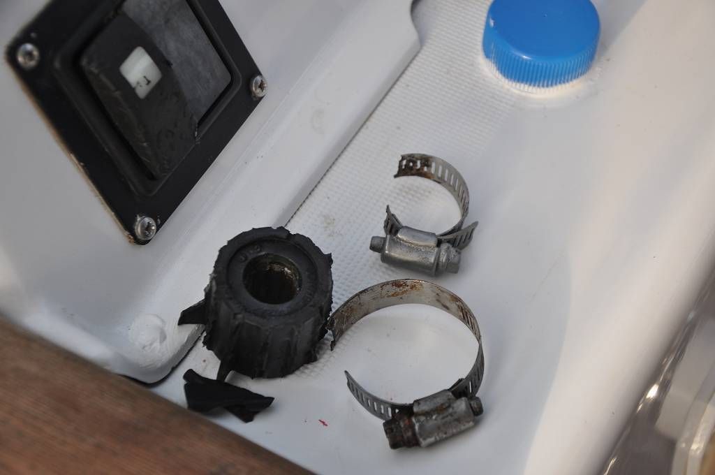 Inzwischen kommt unser neuer Advisor an Bord und ich traue meinen Augen nicht. Es ist der Stern „Astro“, den wir ja schon kennen! Ich muss ihm die schlechte Nachricht mitteilen, dass wir ein Problem haben und dies behoben werden muss, bevor wir weiterfahren können. Aber Astro ist sehr verständnisvoll und geduldig. Alle anderen 5 Boote sind schon längst weg. Nachdem Marcus die kaputte Briede endlich hat loslösen können und wir einen Ersatz dafür an Bord haben, scheint alles wieder i.O. zu sein. Ich mache Frühstück. Aber schon kommt die nächste Hiobsbotschaft. Trotz der neuen Briede kommt kein Kühlwasser. Der Impeller ist total kaputt. Von den 12 Flügelchen, die daran sein sollten ist noch ein halbes dran. Paul hatte den Impeller 6 Motorstunden vorher neu eingebaut.