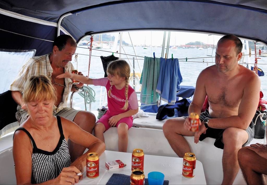 Um 16h ankern wir in der Bucht Las Brisas, vor der Stadt Panama-City. Wir essen zu Mittag/Abend (geschnetzeltes Pouletfleisch mit Pilz-Rahm-Sauce und Kartoffelpüré) und dazu regnet es volle Pulle. Wir sitzen gemütlich in unserer Kuchenbude. Doris und Andi von der ANDORI kommen auf zwei Biere vorbei. Und weil es so regnet und es schon so spät ist, bleiben Daniela und Beat noch eine Nacht bei uns an Bord. Daniela, Jessica und ich kratzen uns um die Wette die unzähligen Mückenstiche blutig.