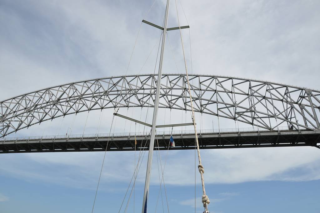 Um 13h30 erblickt die MABUHAY den Pazifischen Ozean. Bei der Centenario Brücke regnet es kurz. Astro bekommt als Mittagessen einen mächtigen Teller voll Farfalle mit Hackfleisch, von gestern Abend. Um 14h wollen wir beim Balboa Yachtclub unsere 12 Autoreifen und die 4 Leinen abgeben. Die wollen jetzt plötzlich 12$ für's Abgeben haben, dabei hat uns Agent Erick ausdrücklich gesagt, das koste nichts. Wir bezahlen nichts und schmeissen die Sachen einfach in das offene Motorboot.